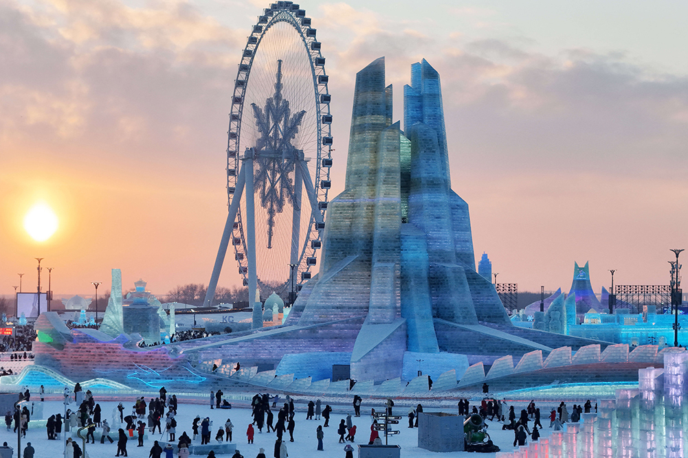 В Китае работает 26-й Харбинский фестиваль льда и снега. Ежедневно ледовый парк посещают тысячи туристов, приезжающие на север страны, чтобы посмотреть на грандиозные ледовые скульптуры.