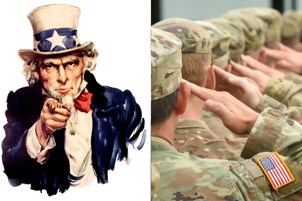 Особенно известен образ Дяди Сэма, изображенный на агитационном плакате. «Ты нужен мне в армии U.S.», — говорит сердитый мужчина, тыча пальцем в смотрящего. Изображение было создано художником Джеймсом Монтгомери Флэггом в 1917 году и использовалось для вербовки новобранцев в годы Первой и Второй мировых войн. Впоследствии автор признавался, что рисовал Дядю Сэма с самого себя. В 1961 году Конгресс США принял резолюцию, официально признав Сэмюэла Уилсона прообразом Дяди Сэма.