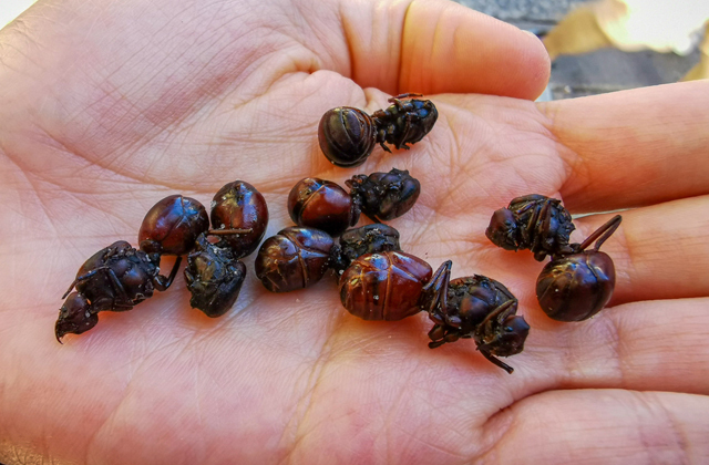 В Мексике можно попробовать другое муравьиное блюдо — эскамолес. Оно состоит из яиц гигантских черных муравьев Liometopum, которые живут в корневой системе растения агава. Вы можете даже не заметить, что съели личинок муравьев, так как их часто завертывают в фастфуд, пряча в лепешке. Вкус эскамолес напоминает сливочное масло с орехами.
