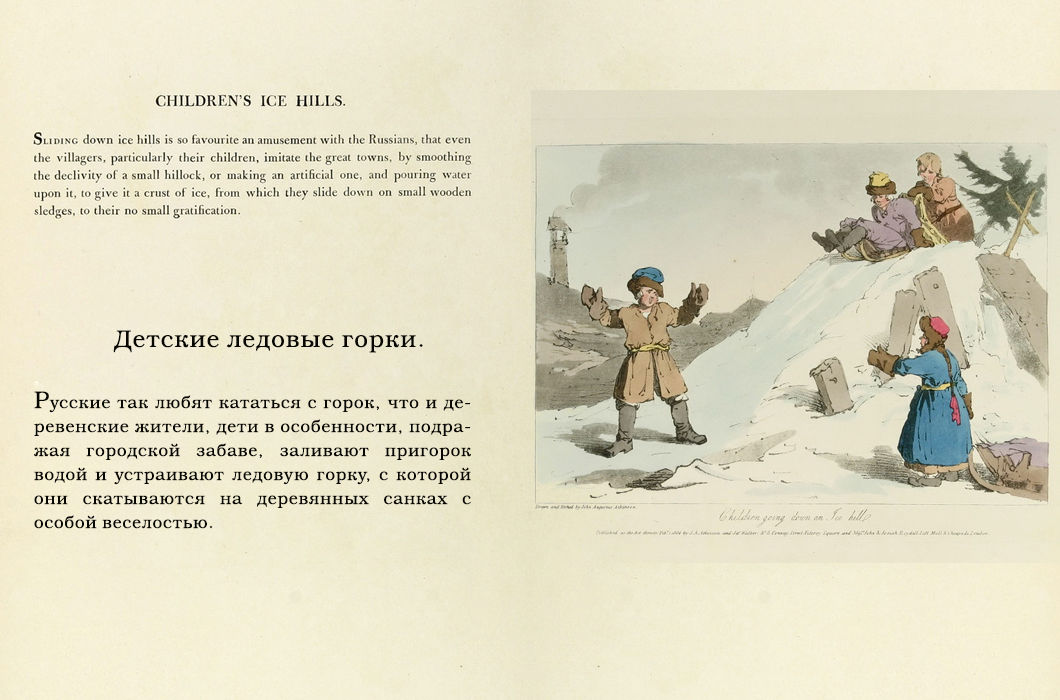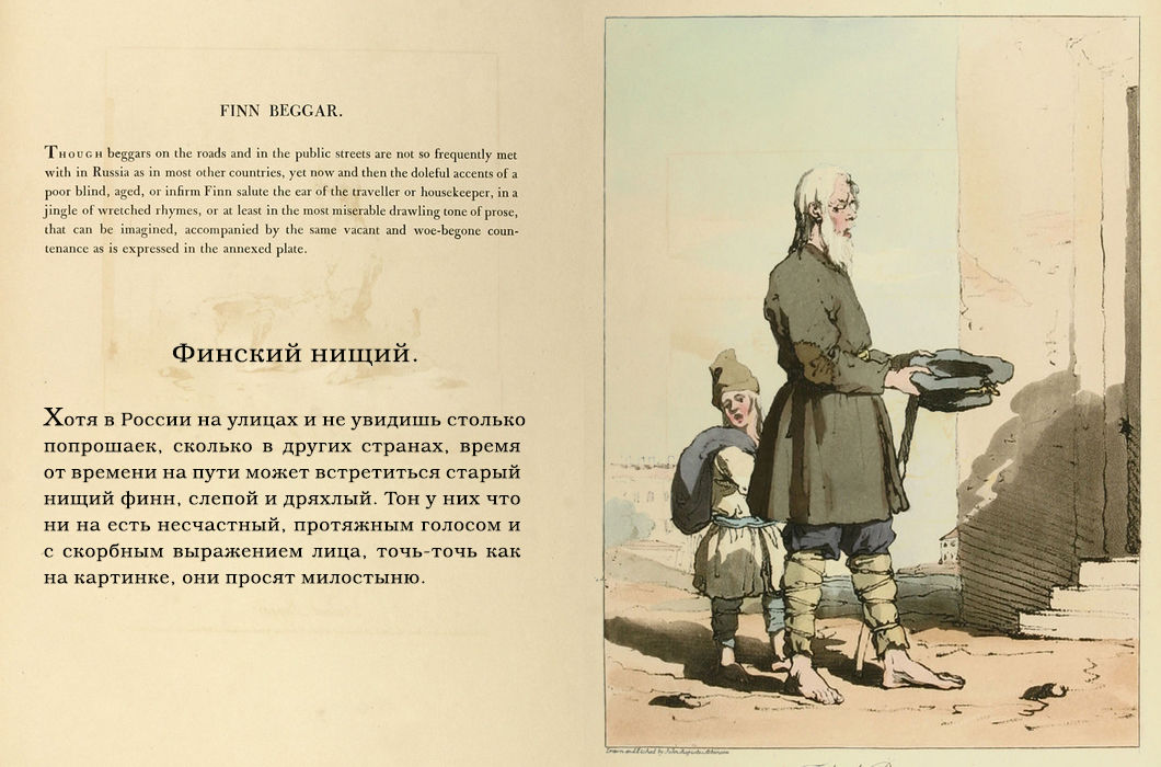 Джон Огастес Аткинсон был живописцем при дворах Екатерины II и Павла I. Приехав в Российскую империю из Лондона еще ребенком, он учился ремеслу под руководством своего опекуна Джеймса Уокера. В 1803–1804 годах Аткинсон и Уокер издали в Великобритании три альбома с офортами, изображающими население и сцены быта России на рубеже XVIII–XIX веков, — A picturesque representation of the manners, customs and amusements of the Russians. Гравюры имели подписи на французском и английском языках и быстро разошлись по Европе. Мы перевели для вас то, что Джон Аткинсон и его коллега сочли нужным сообщить европейцам. Сам альбом сейчас можно найти в Государственном Эрмитаже и в Российской национальной библиотеке.