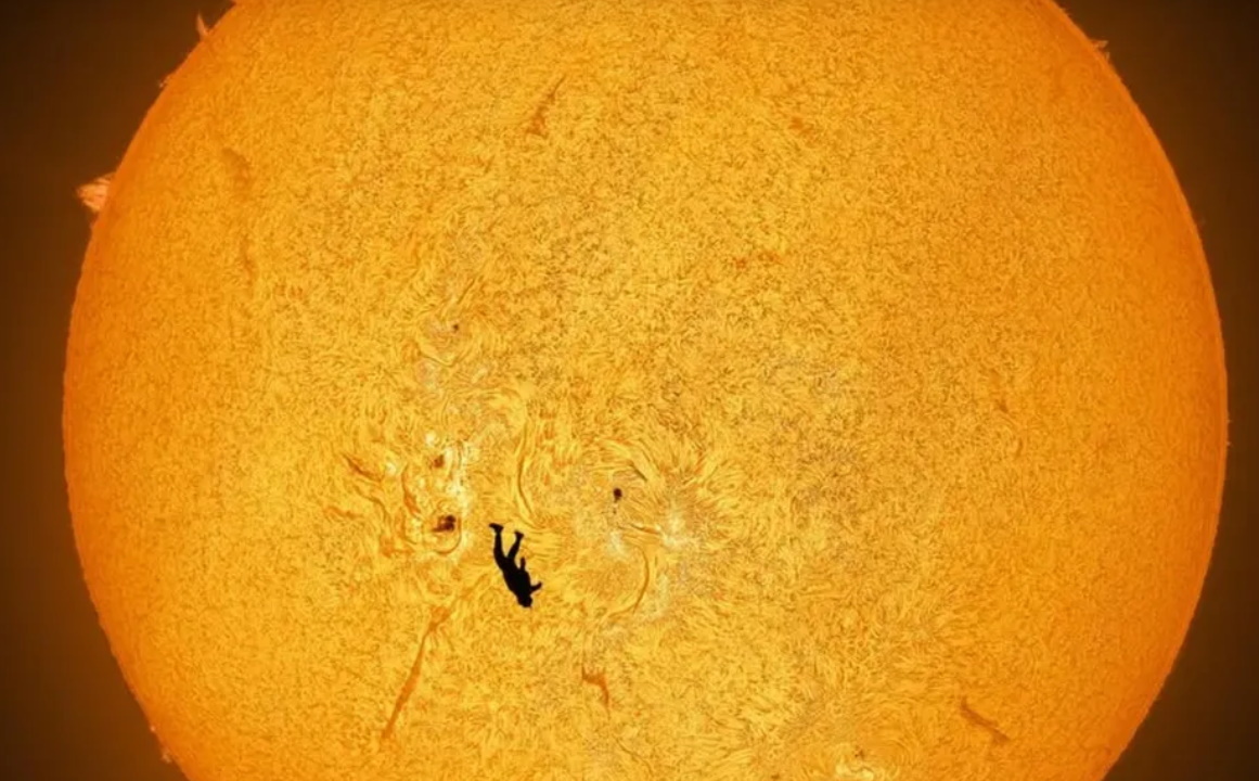 Астрофотограф сделал удивительный снимок парашютиста, «падающего на Солнце»