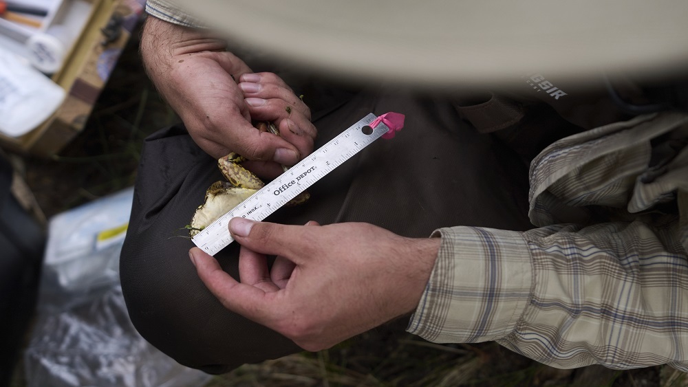 Уже через три минуты он знает, что у пруда, куда недавно вернули местных красноногих лягушек, побывало много животных. Слышны уханье совы, стук дятла, вой койота и голоса древесных лягушек. Но одного звука нет — громкого кваканья инвазивной лягушки-быка, которая за последнее столетие почти уничтожила местных красноногих лягушек. Это еще один успех в работе ученого по восстановлению популяции редких земноводных, пишет AP.