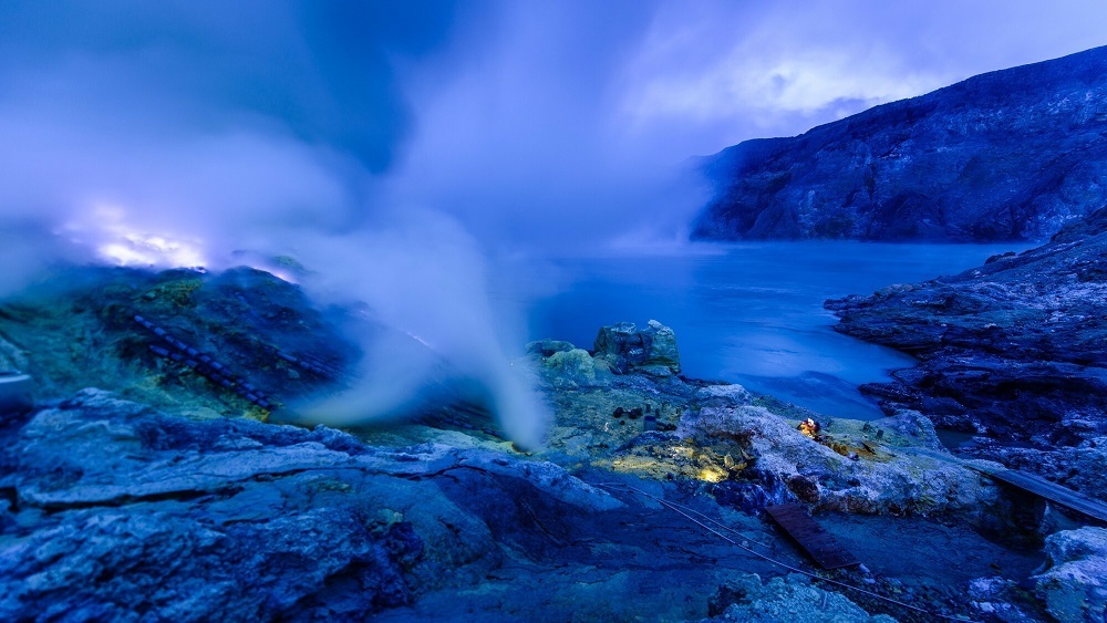 На востоке индонезийского острова Ява находится один из самых необычных вулканов в мире — Кавах Иджен. Его извержения выглядят как фантастическое световое шоу: вместо привычной красной лавы он извергает ярко-голубую, которая светится даже ночью. Это зрелище привлекает тысячи туристов, но за красивой картинкой скрывается смертельная опасность, пишет Green Matters.