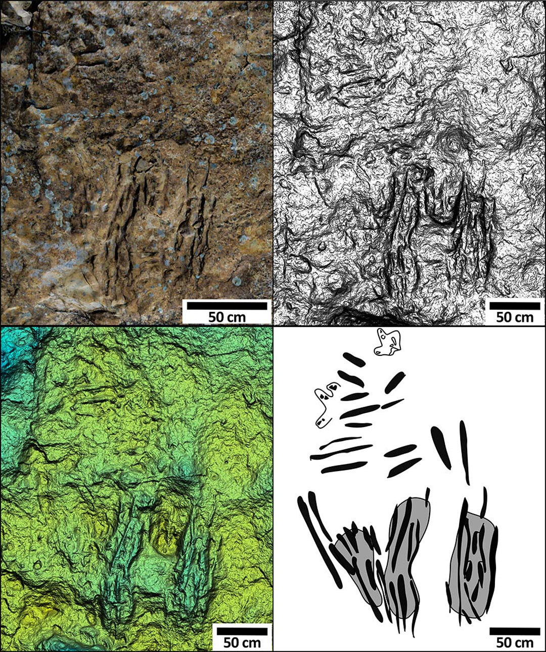 Новая находка относится к участку, который 100 млн лет назад представлял собой регулярно затапливаемую приливную равнину. Илистый грунт хорошо сохранил следы многочисленных видов — от утконосых гадрозавров до страусоподобных травоядных. В 2023 году на склоне обнаружили пять окаменелых царапин, оставленных двуногими динозаврами средних размеров, — как изначально предполагалось, при постройке гнезд.