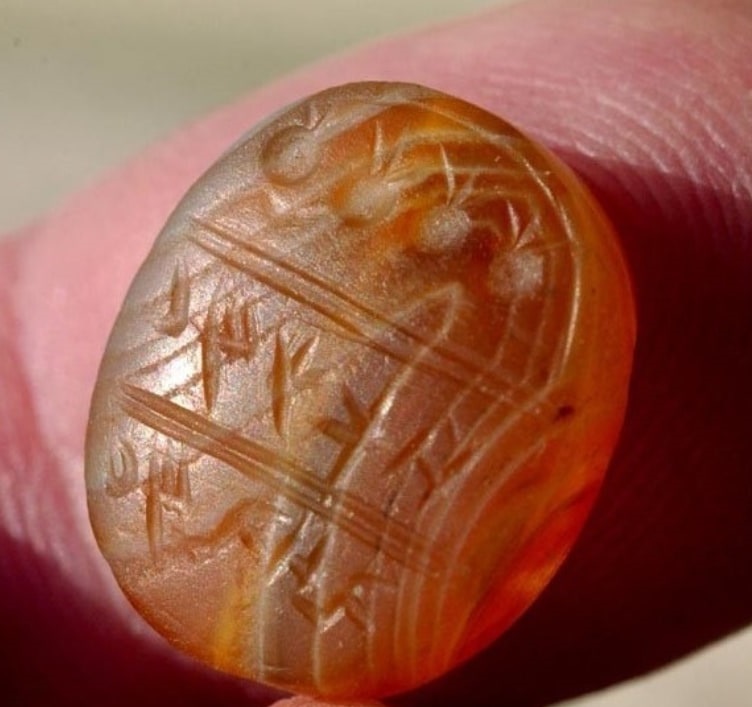 Печать, вероятно, носили на шнурке как личный амулет или знак большой должности. Скорее всего, она принадлежала высокопоставленному чиновнику. Вместе с печатью обнаружены ручки кувшинов с оттисками королевских штампов, включая надпись «Принадлежит царю», а также названия городов Хеврон и Зиф — важных административных центров Иудеи. Ранее древнюю мозаику с библейскими сюжетами о Самсоне нашли в Израиле.