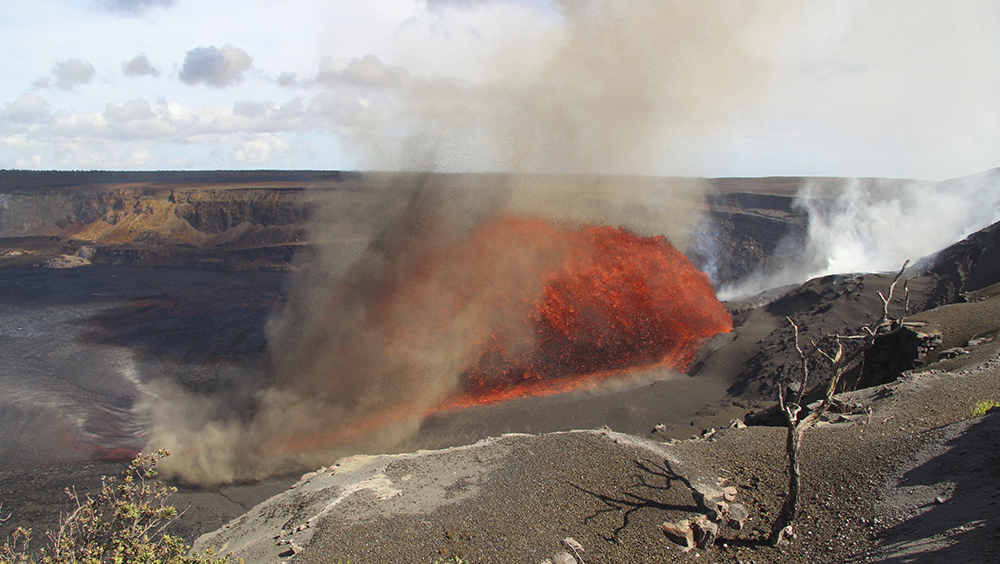 В ходе прямой трансляции с камеры Геологической службы США, установленной на вулкане Килауэа на Гавайях, было зафиксировано редкое природное явление — вихрь из пепла, поднятый рядом с активным лавовым фонтаном. Специалисты в шутку назвали это явление «вулканадо», хотя официального термина пока не существует.