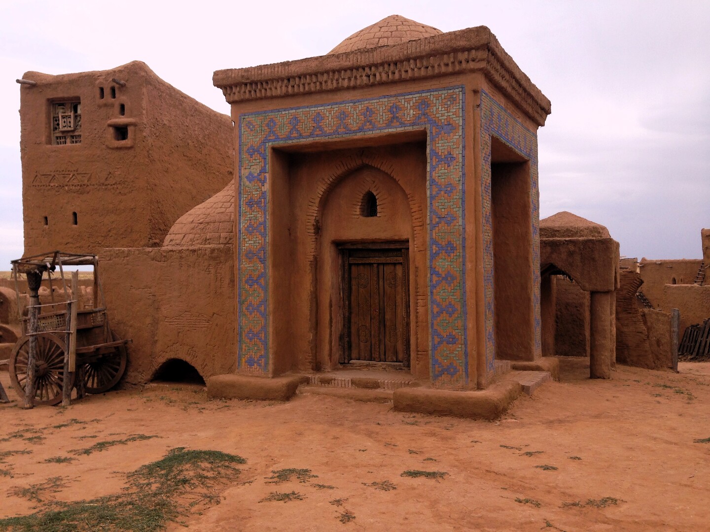 все здания построенные тут - деревянные, обмазанные снаружи глиной. Что тоже, весьма приближает облик бутафорского города к облику оригинала, но добавляет хлопот по сохранению и содержанию его...