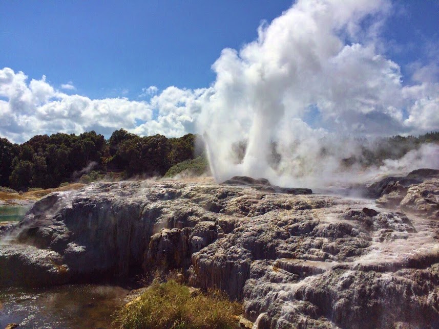 Te Puia – знаменитое геотермальное поле, в первую очередь 25 метровым гейзером Pohutu. Кроме разнообразных булькающих геотермальных штуковин сможете посмотреть на живую птичку Киви и на представление коренных жителей Маори. Это всё включено в стоимость входа.
