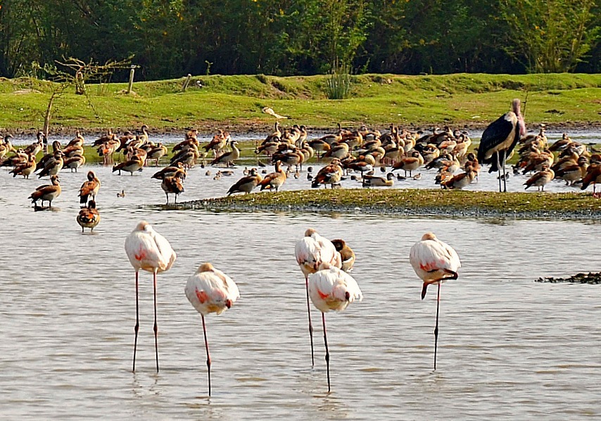 Красочные фламинго в зоопарке- сафари в Гуанчжоу.