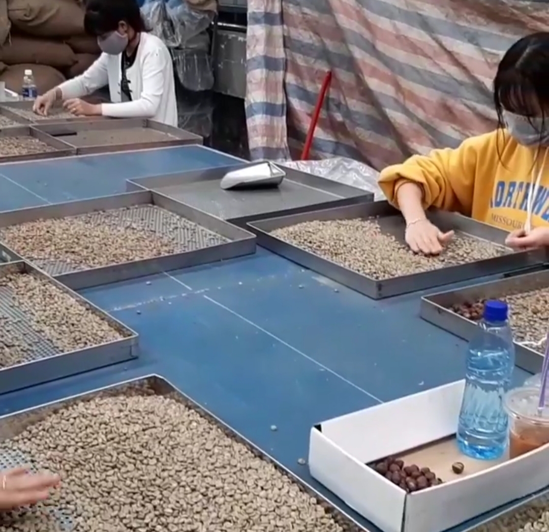 Зерна, прошедшее автоматизированную калибровку, затем проходят ещё и ручную.