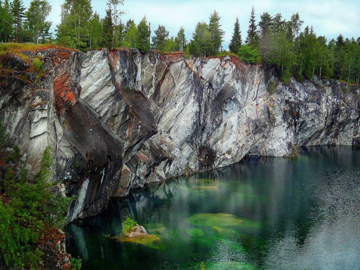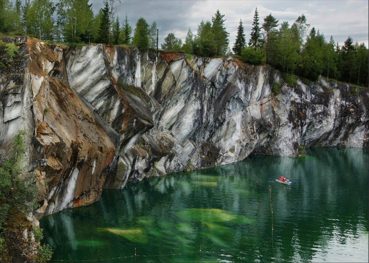 На одном из маршрутов по северному приладожью с друзьями решили заехать в малоизвестную и практически дикую Рускеалу. Тогда ещё не было скоростной дороги А-121 и до Карелии ехали, толкаясь в пробках на "староприозерке" по 5 часов. А потом тряслись 50 км на грунтовом серпанитине. (после тех приключений язык не повернётся сказать, что в нашей стране ничего не улучшается). В поселке Рускеала не было ни народу(!), ни дорожек, ни заборов, ни охраны. Платный был только прокат лодок. Во время прогулки я сделал там на обычную “мыльницу“ (как сейчас кажется) неудачный кадр, который в тот момент был для меня неповторимым шедевром. Позднее после криворукой обработки в фотошоп (я им тогда владел на уровне дилетанта) загрузил его в группу ВК National Geographic.