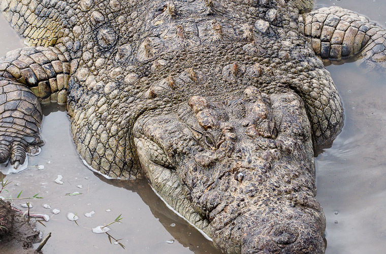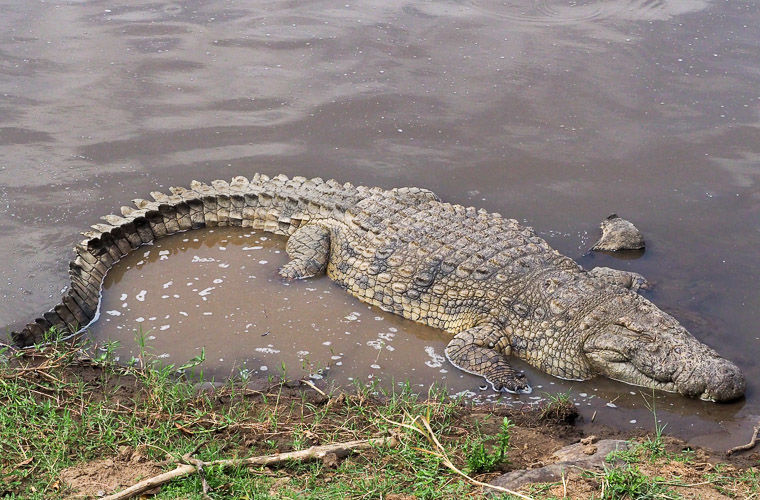 Многие считают, что близкий родственник носорога - бегемот. Это вовсе не так. Конечно, бегемоты похожи на носорогов своими маленькими ножками и большим телом, но на это сходство заканчивается. Мы много раз встречали в реках Масаи-Мары этих чудесных фыркающих гигантов. Однажды мы даже завтракали рядом с ними. Вы спросите, как же нам разрешили? А ответ прост. У бегемотов так устроены ноги, что они не могут забираться по ступенькам или неровностям. Бегемот перемещается только по ровной или покатой поверхности. А мы были на крутом берегу, до которого этим мощным животным не добраться. Зато мы смогли вдоволь насладиться их переговорами и насмотреться на то, как они купаются. У бегемотов очень нежная кожа, поэтому они вынуждены большую часть времени проводить в воде. Покидают они водоемы только на ночь, когда нет такой жары. Несмотря на всю свою неказистость и внушительные размеры, бегемоты очень быстро бегают и плавают. А еще их огромные сильные челюсти с большими зубами представляют серьезную опасность для всех животных. Поэтому часто можно увидеть бегемотов рядом с крокодилами. Те стараются не приближаться к соседям по реке, держась на приличном расстоянии. И мы убедились в этом собственными глазами, когда в одном месте встретили стадо бегемотов спокойно плещущихся в реке, кишащей аллигаторами. Огромные, толстые бревна лежали и на берегу, и в воде. Мы сначала даже не сразу увидели всех - неподвижных аллигаторов легко можно принять за бревна или камни.