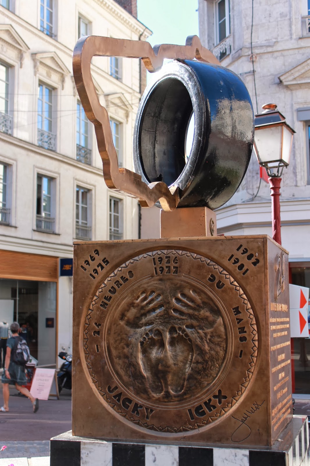 На площади - кафэ, лавочки, всё очень мило. Держим путь к главной достопримечательности города. Много магазинчиков, и много напоминаний о знаменитых гонках "24 часа Ле Мана".