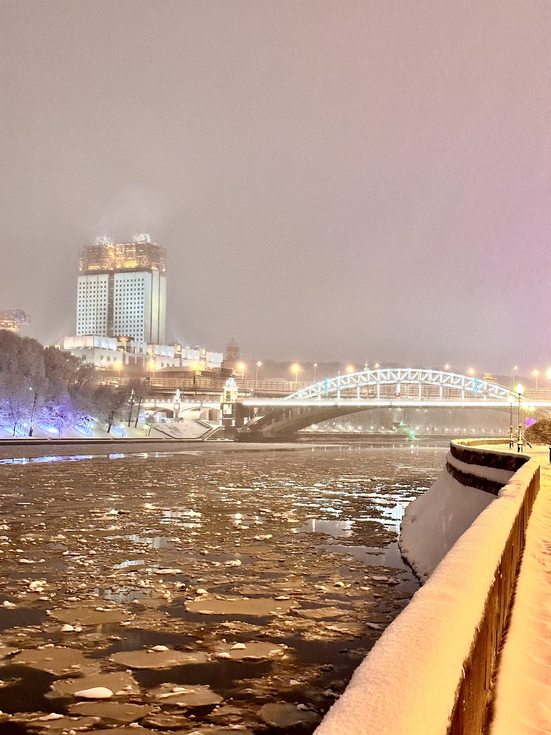 Москва-река, за ней - засыпанный снегом, Нескучный сад...