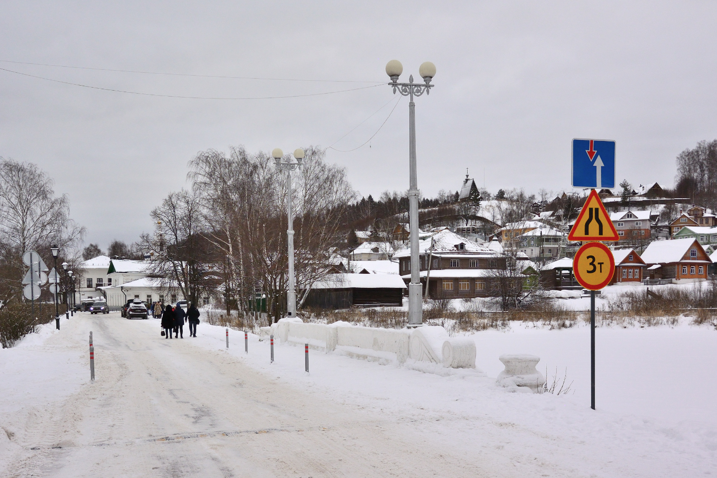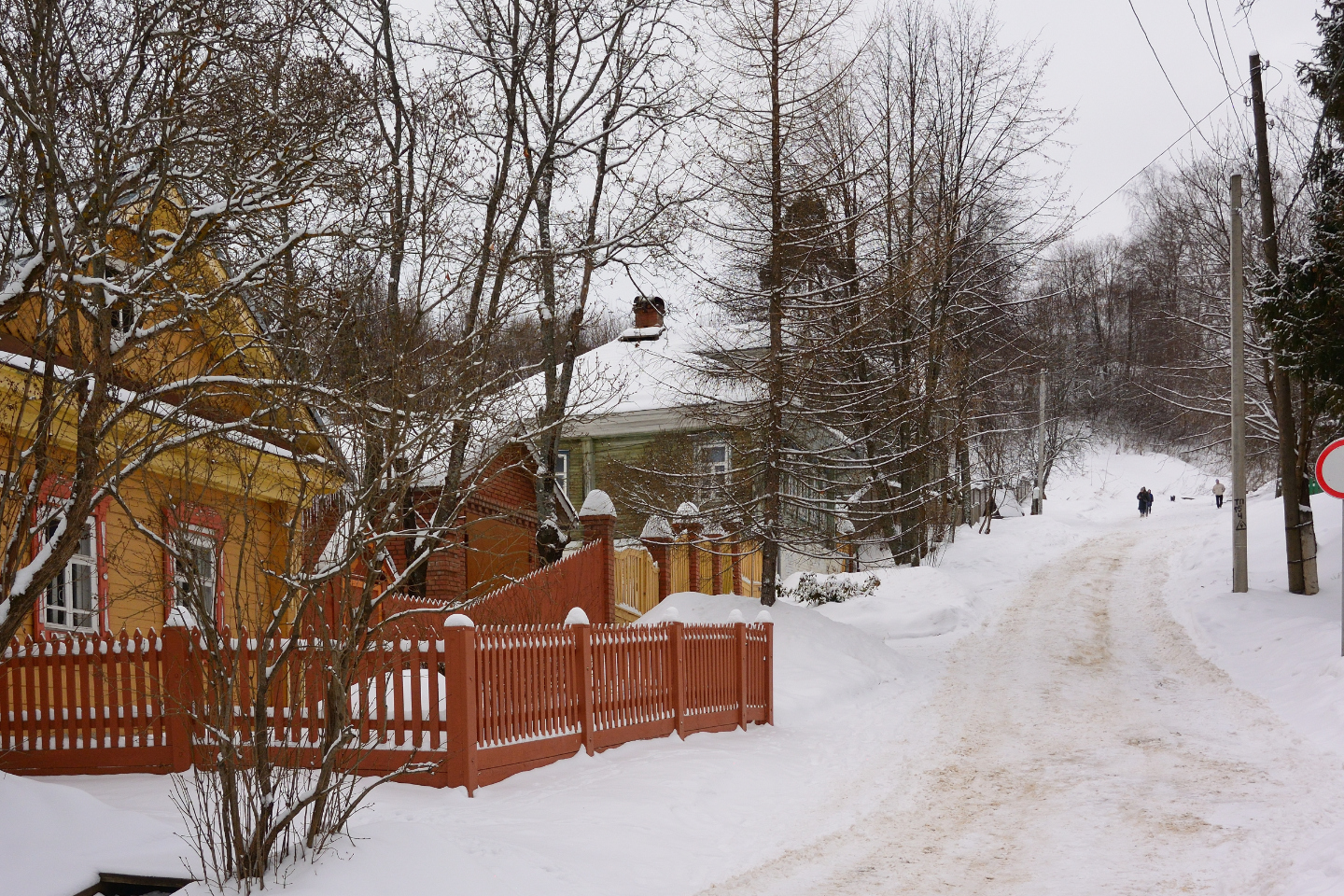 Улицы в Плёсе и в самом деле узкие. Местами крутые. К тому же, снега навалило. Есть такие закоулки, куда на автомобиле въехать совсем не просто. Но основные дороги вполне обычные. И даже расчищены.