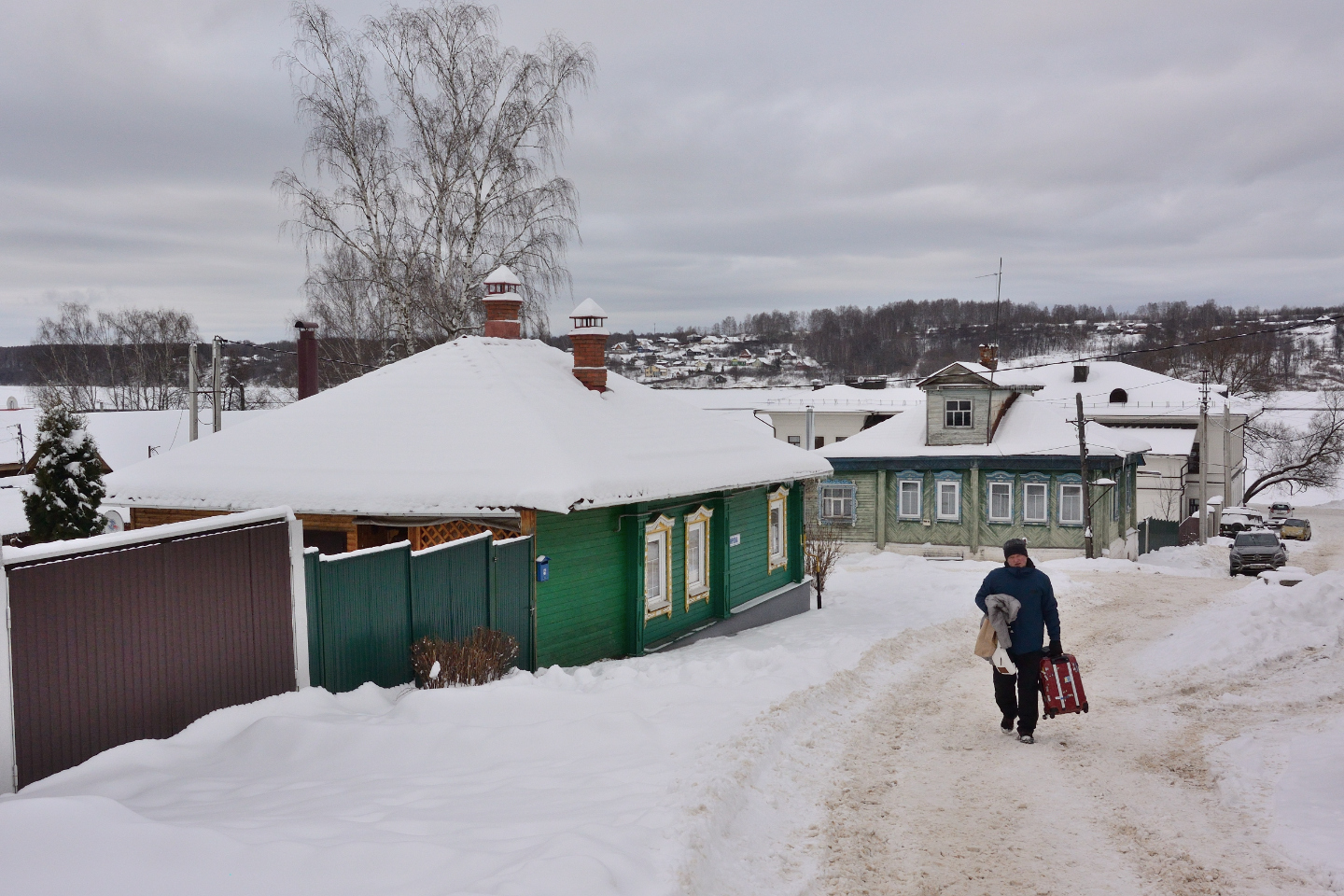 Туристов не так чтобы много! Может все ужинают, может новогодние цены на жильё напугали, а может пандемия? Тем не менее, попасть в дом-музей Левитана можно только строго по записи. Записываемся на завтра на 13.00 и продолжаем прогулку. Идем вдоль набережной, где на каждом доме висит табличка. Да, мы находимся в городе-музее! Читать будем завтра, а сегодня пора домой. После раннего подъема и переезда нужно выспаться.