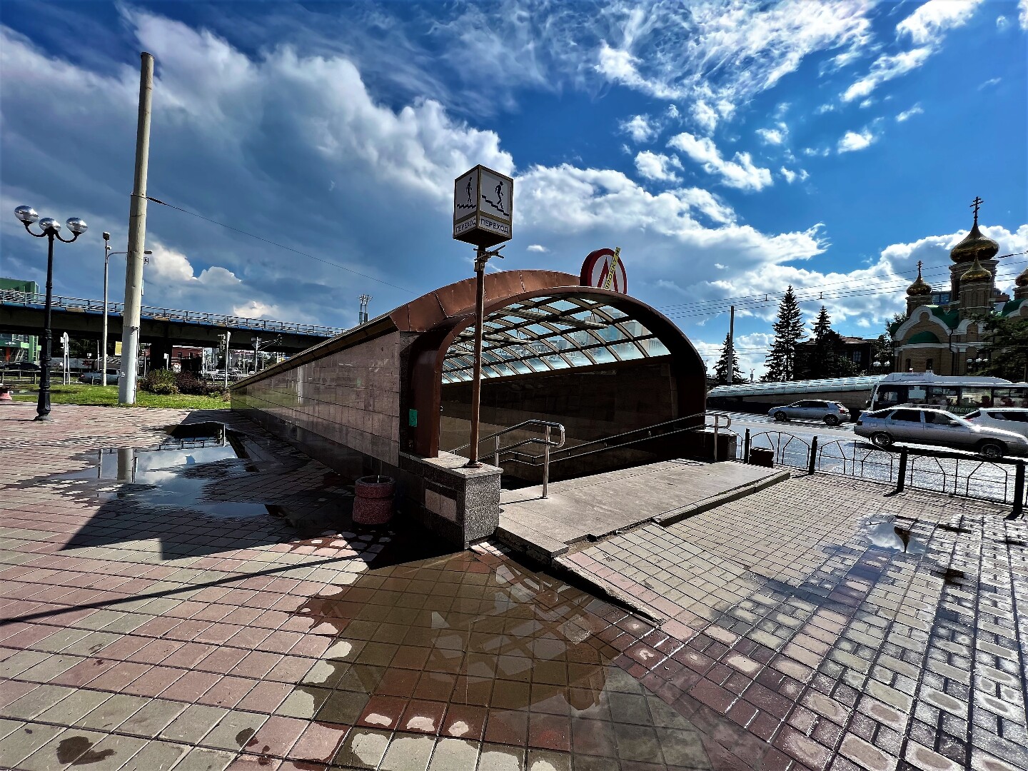 еще одна весьма своеобразная и колоритная достопримечательность - недостроенное метро Омска, в виде единственной станции - Библиотека имени Пушкина