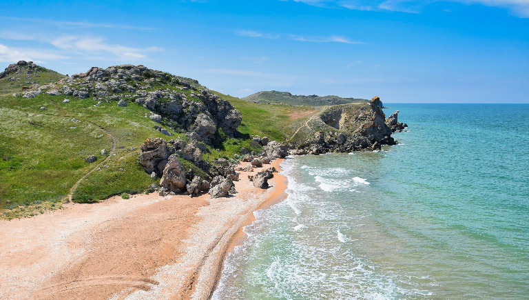 Дорога рассекает в степь. Параллельным курсом бежит железнодорожное полотно. Между двумя дорогами пасутся коровы и два верблюда - местные знаменитости. На них, говорят, в сезон катают туристов.