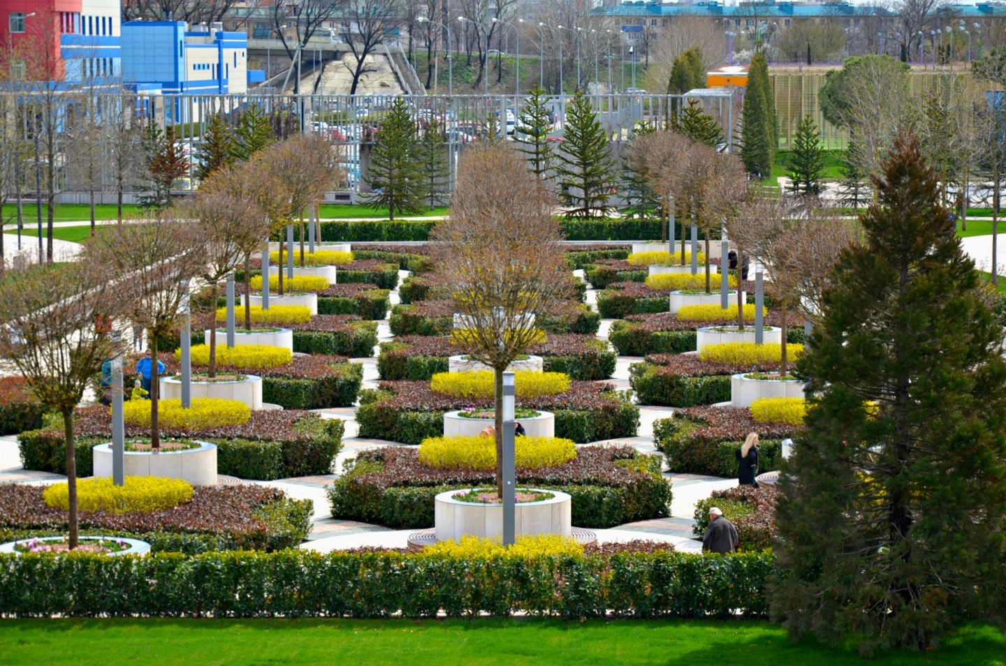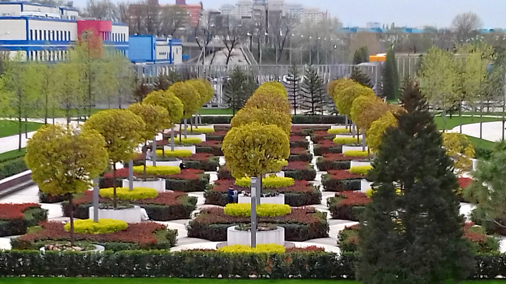 Строгость линий и симметрию аллей, клумб лучше всего видно со смотровой площадки.