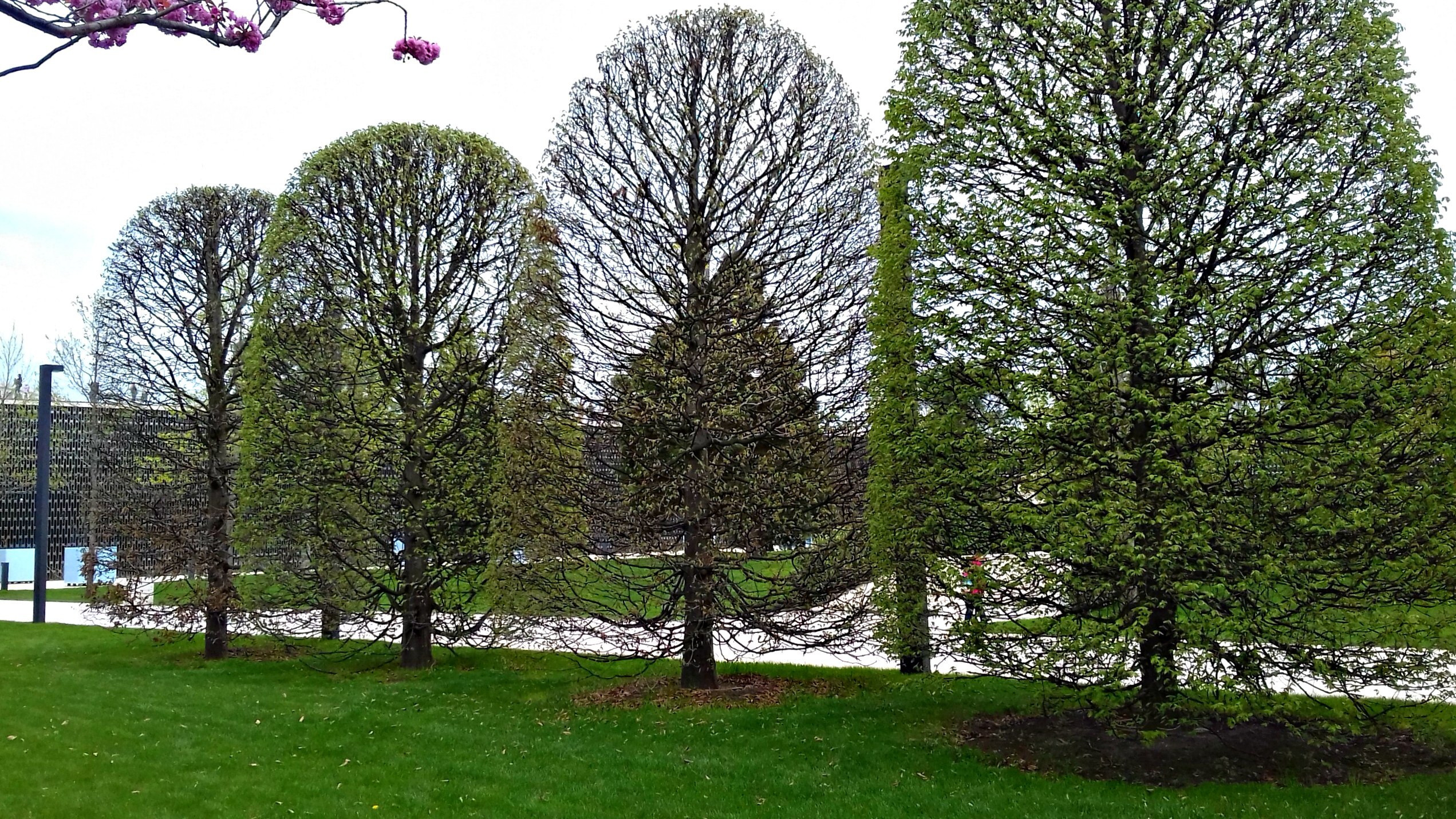 А вот аллеи деревьев с полупрозрачными округлыми кронами, выглядят они изумительно.