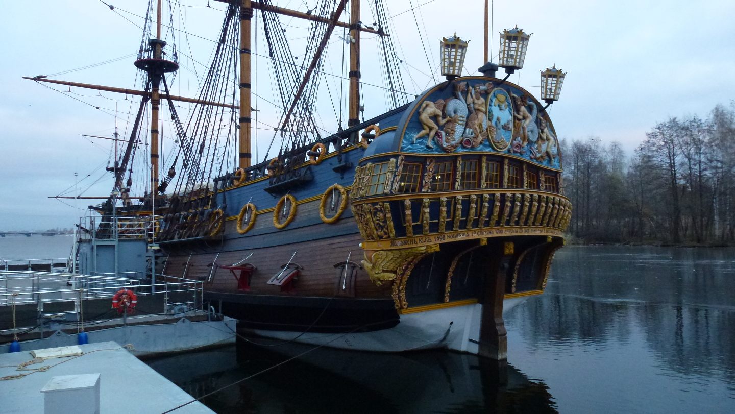 Насколько мне известно, в России не осталось ни одного военного корабля времен Петра I, чтобы и на плаву был, и внешне выглядел достойно. Разве что, только ботик Петра, который хранится в Центральном музее военно-морского флота в Санкт-Петербурге? Да это и понятно, 300 лет прошло с той поры.