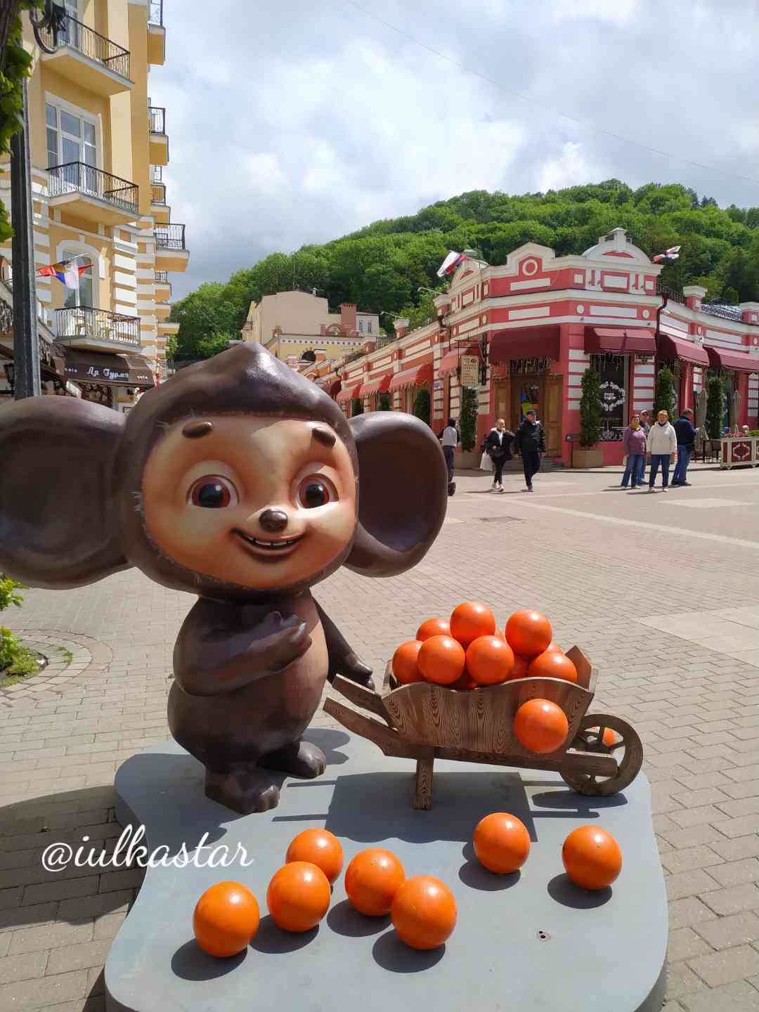 Поэтому в этом городе до сих пор самая настоящая чебурахомания. Особенно это заметно в центре, на улице Карла Маркса и Курортном бульваре. Здесь Чебурашки подстерегают вас буквально на каждом углу.