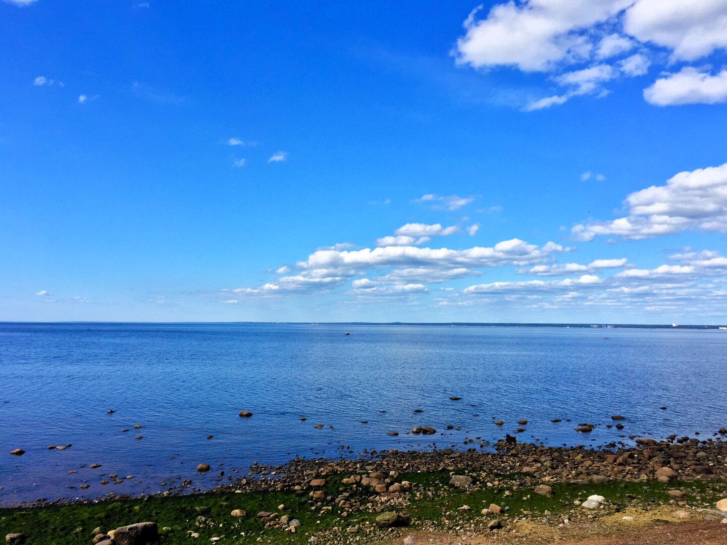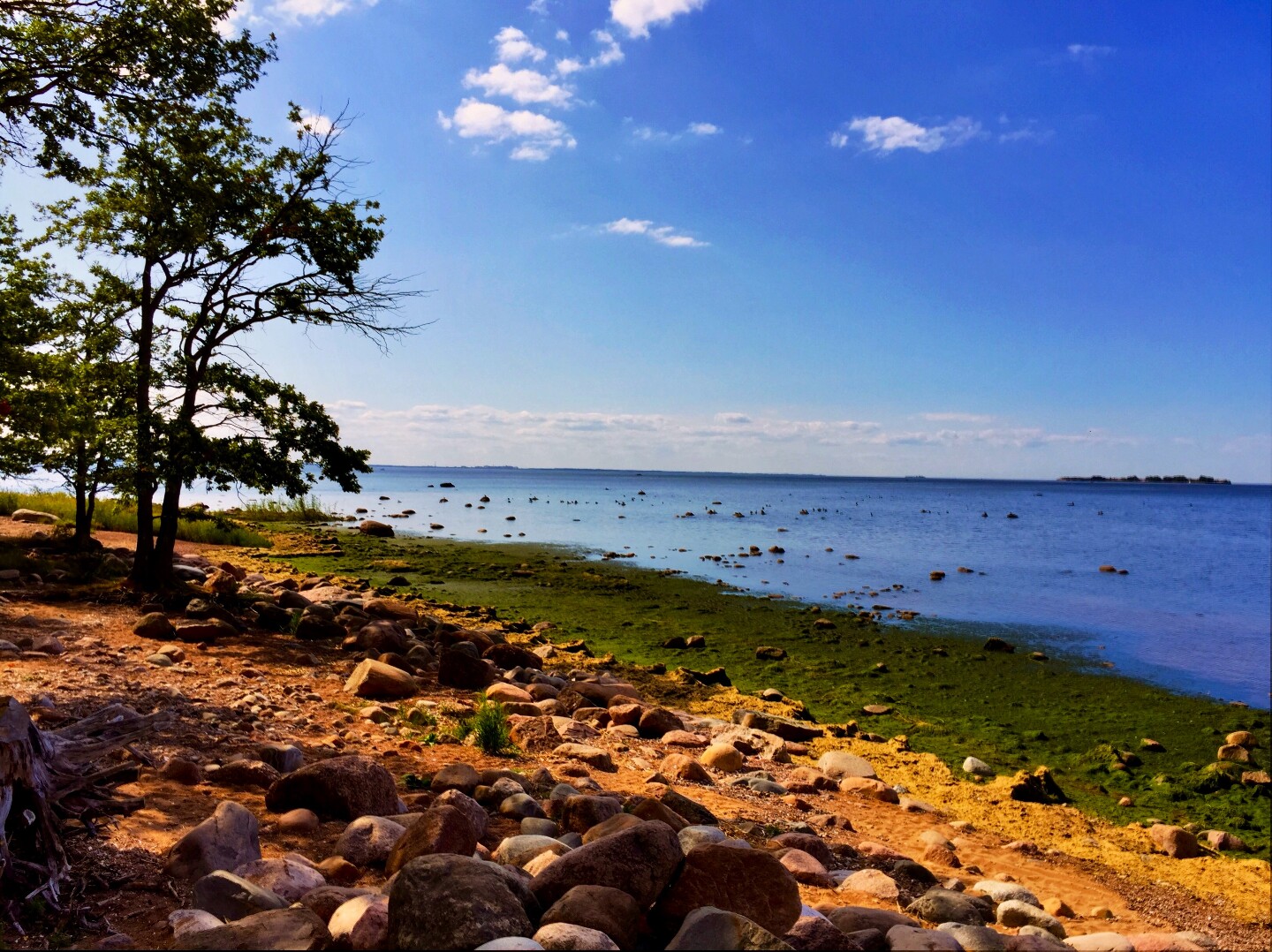 А напротив - в Финском заливе виднеется небольшой остров, с находящимся на нем военным фортом "Тотлебен", построенным в начале 20-го века, а ныне совсем заброшенным...