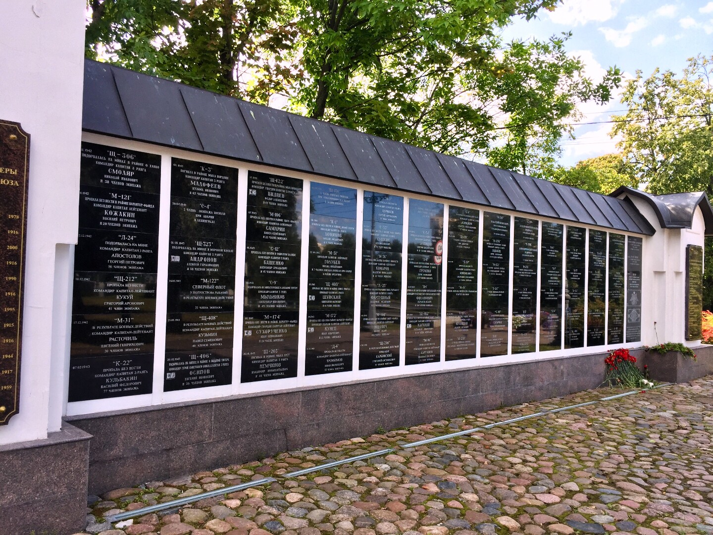 рядом с ней находится монумент в виде силуэта подводной лодки, на котором выбиты названия и даты гибели советских и российских подводных лодок