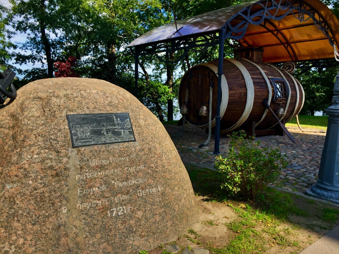 это, так сказать, прототип подводной лодки, выполненный в форме огромной бочки, и представленной изобретателем Е. Никоновым императору Петру I. Как гласит легенда - именно на озере Сестрорецкий Разлив и проводилась та самая демонстрация)