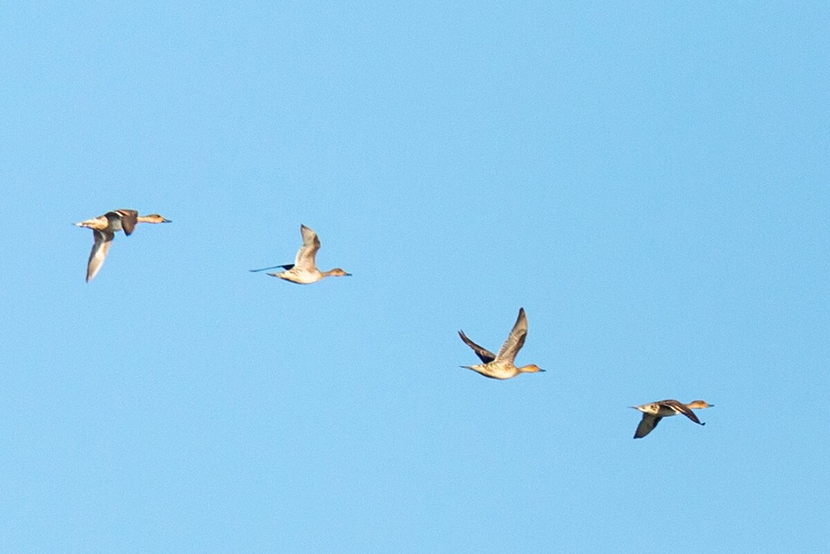 Помните поговорку "птицу видно по полету"? Так вот узнать летящую шилохвость по силуэту достаточно несложно.