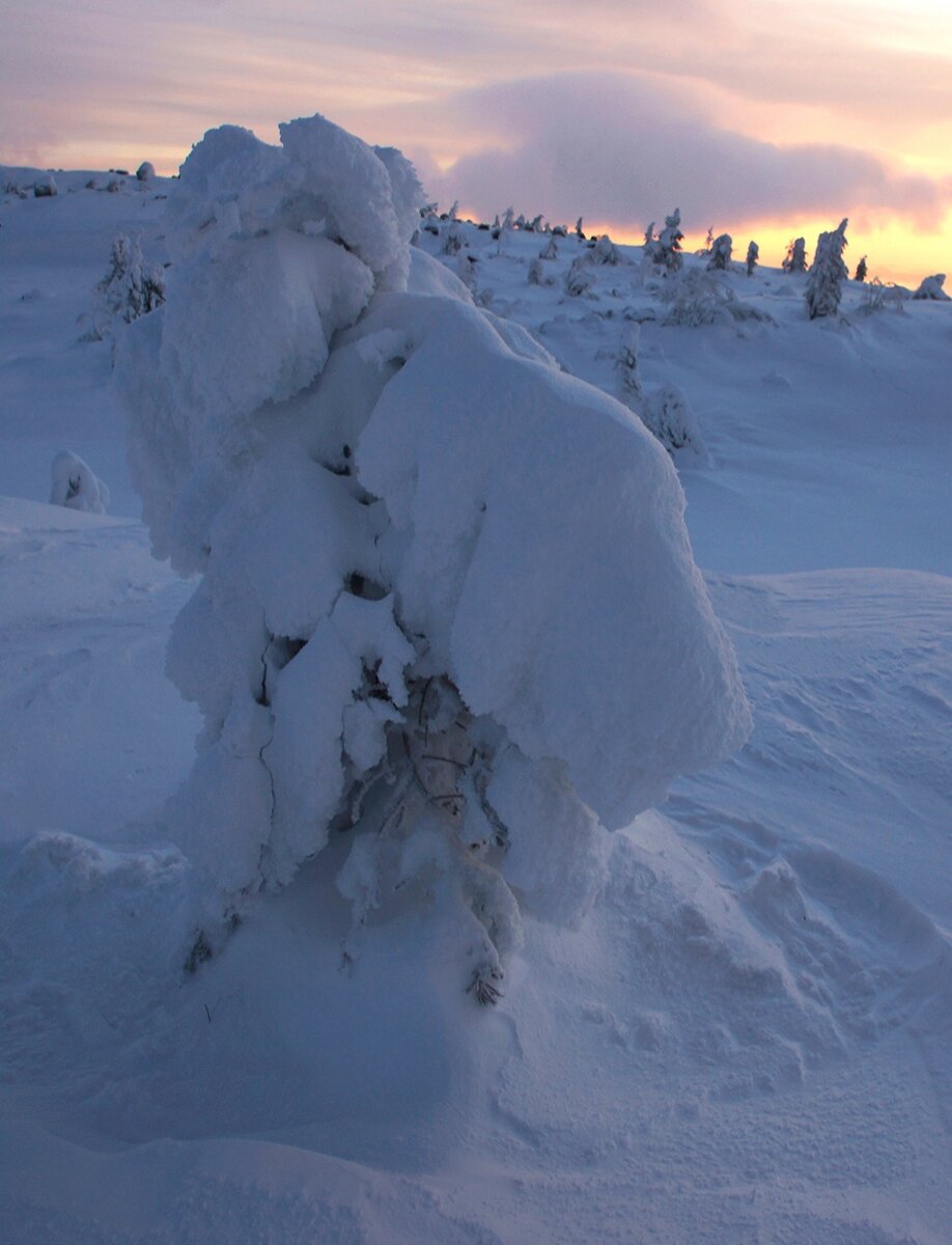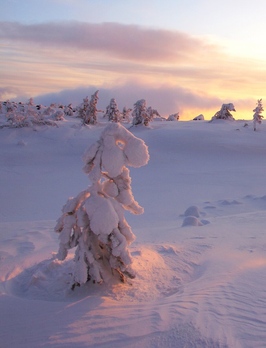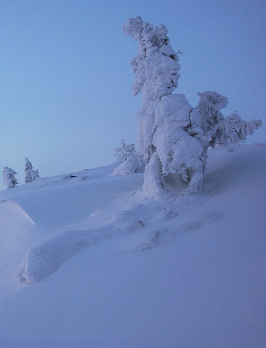 Где-то далеко за Северным полярным кругом, на склонах Волосяной горы, каждую зиму снег и иней создают из деревьев неповторимые скульптуры. Некоторые из них похожи на животных, другие на сказочных персонажей - смотря под каким углом посмотреть. Несколько лет назад мне удалось их поснимать. Всего-то два часа съёмки на морозе, в динамически меняющемся освещении, - и получились такие оригинальные картины. Чем дольше на них смотришь, тем больше разных силуэтов удается рассмотреть.