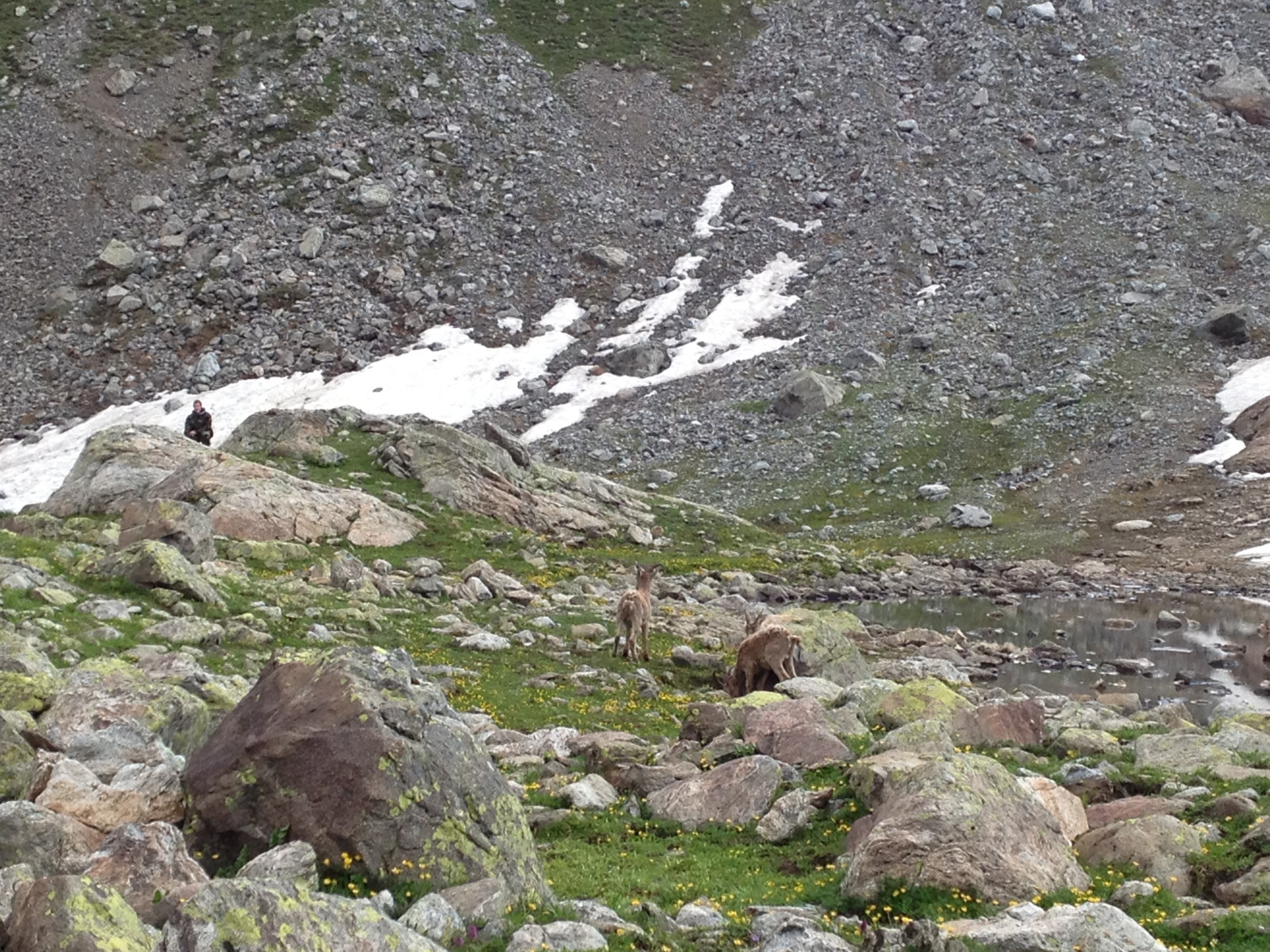 На озерах редко проходят люди, зато можно встретить диких зверей. Нам посчастливилось увидеть стадо туров - это дикие горные козлы. Особенно поразила их способность передвигаться по камням. По скользкой неровной поверхности, где люди падают и ломают ноги, они бегают, как по равнине.