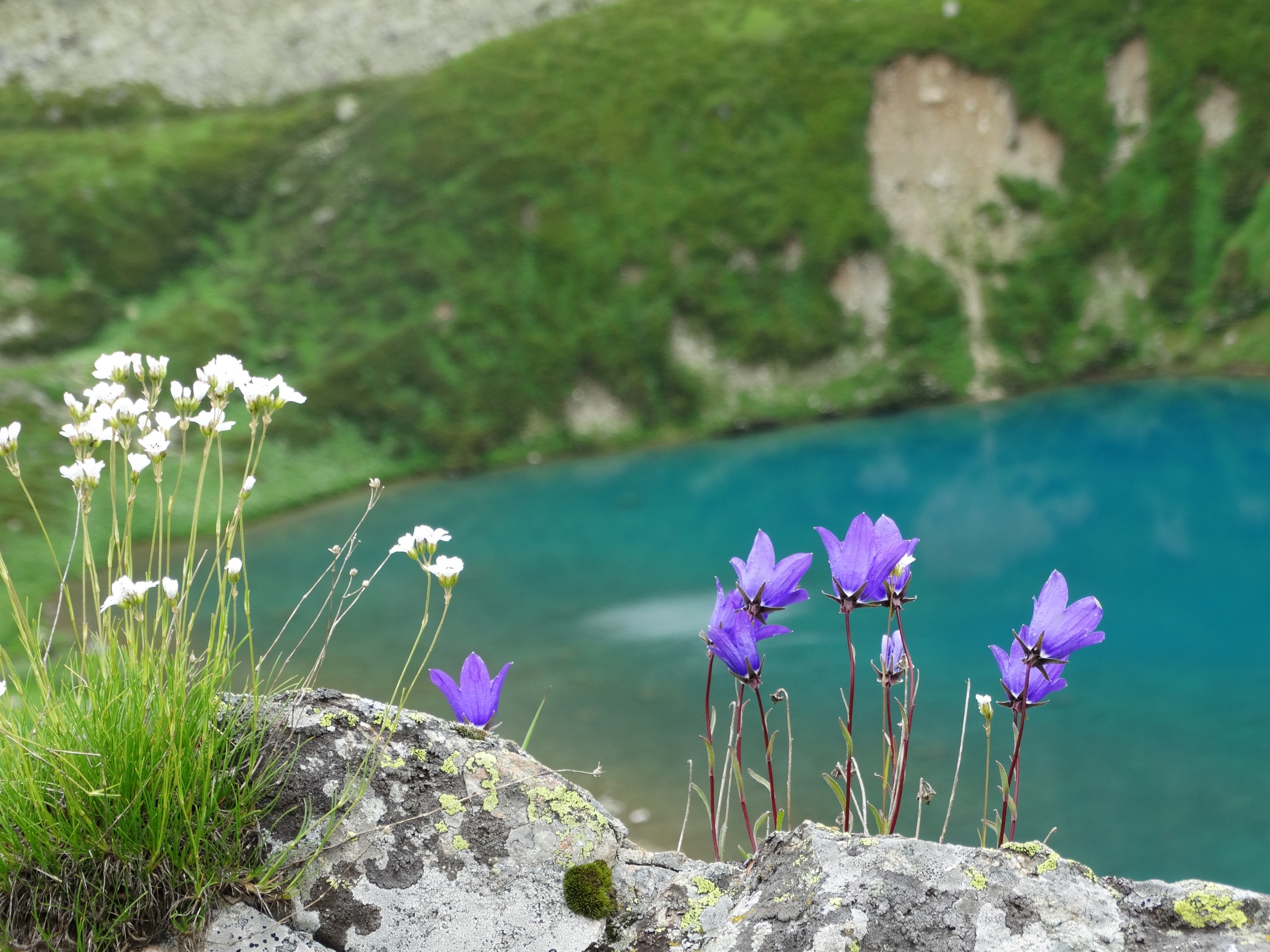 Летом на склонах Архыза полно цветов. На фоне гор, они смотрятся особенно красиво.