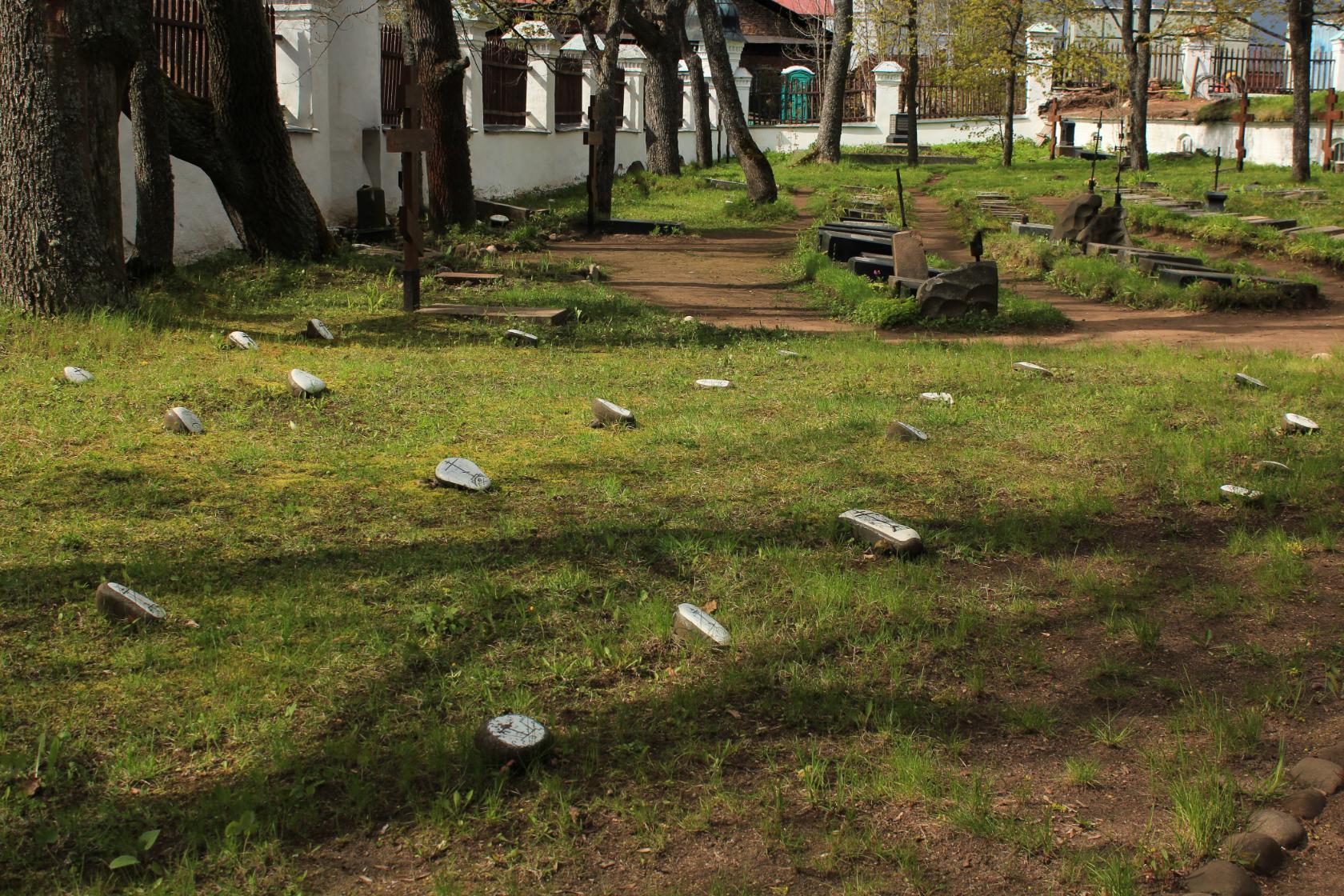 Здесь нет памятников, монахи их не любят. Тесными рядами лежат сохранившиеся могильные плиты XIX-ХХвв.