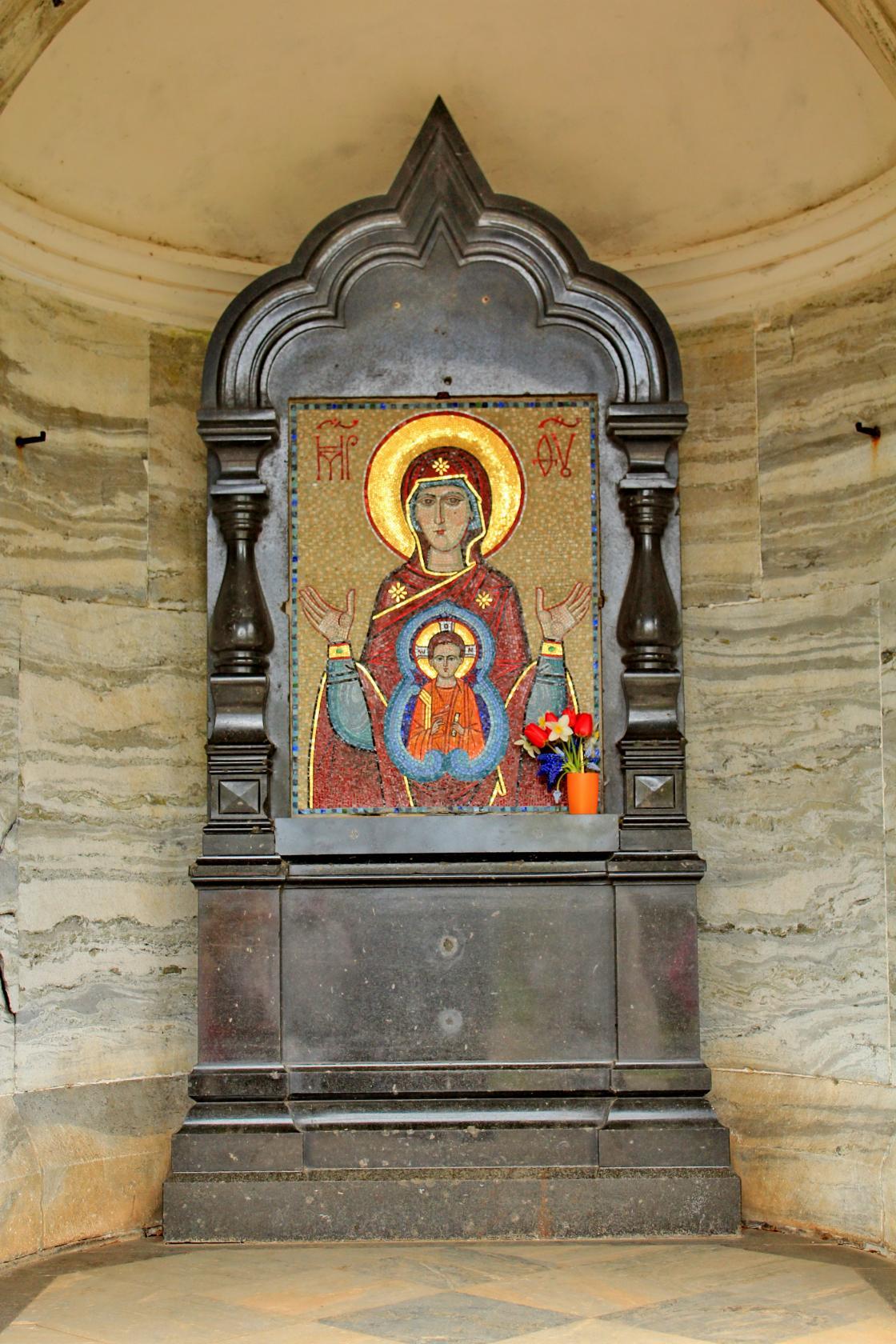 Внутри Знаменской часовни установлена Икона Знамение Божьей Матери.