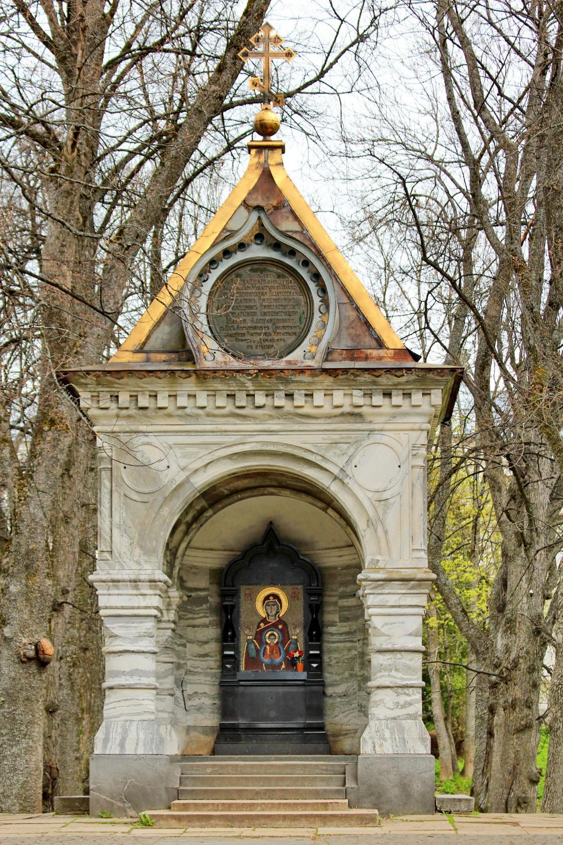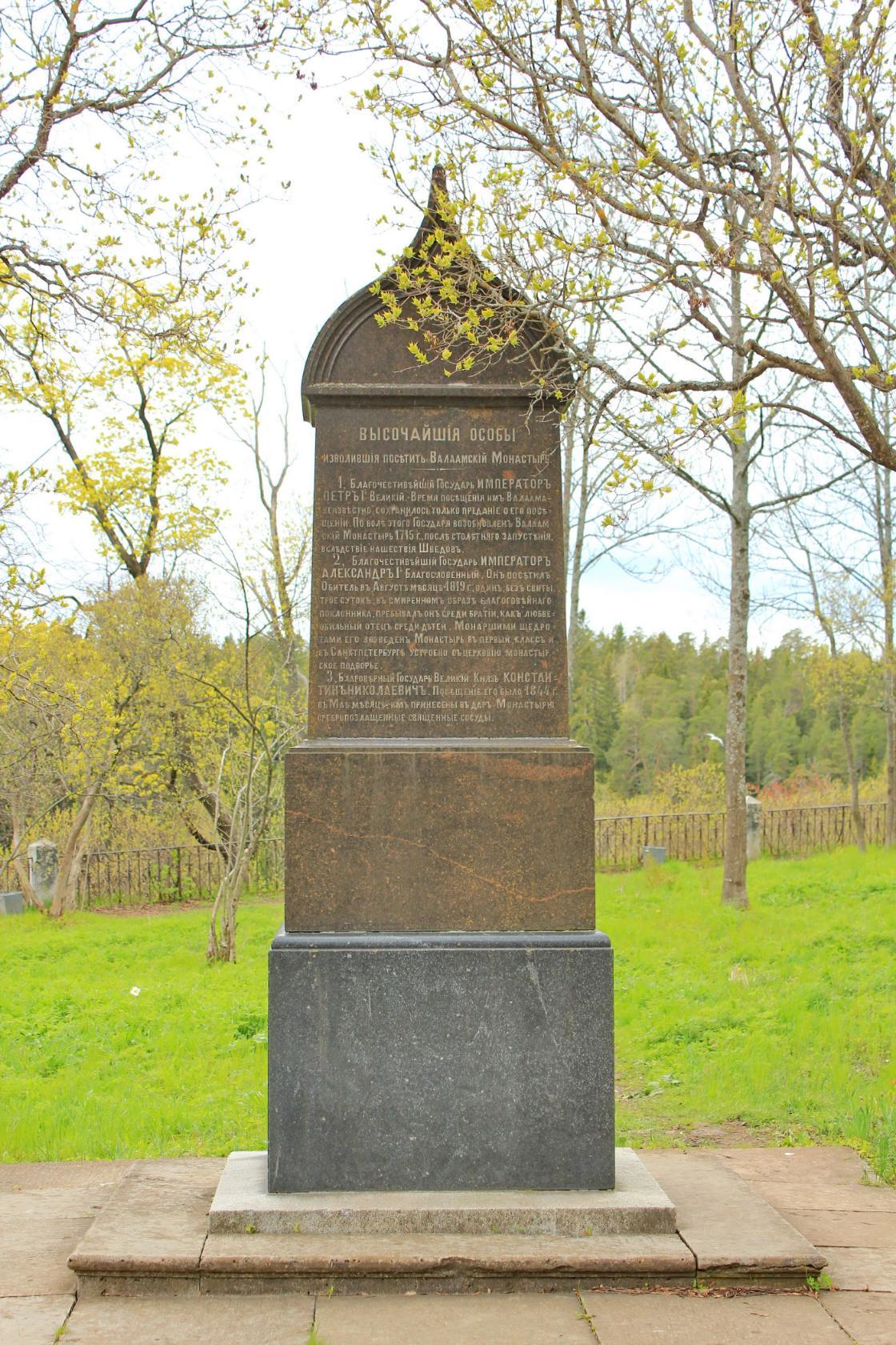 Напротив Знаменской часовни находится гранитная стела с именами высочайших особ, посетивших монастырь в разные годы.