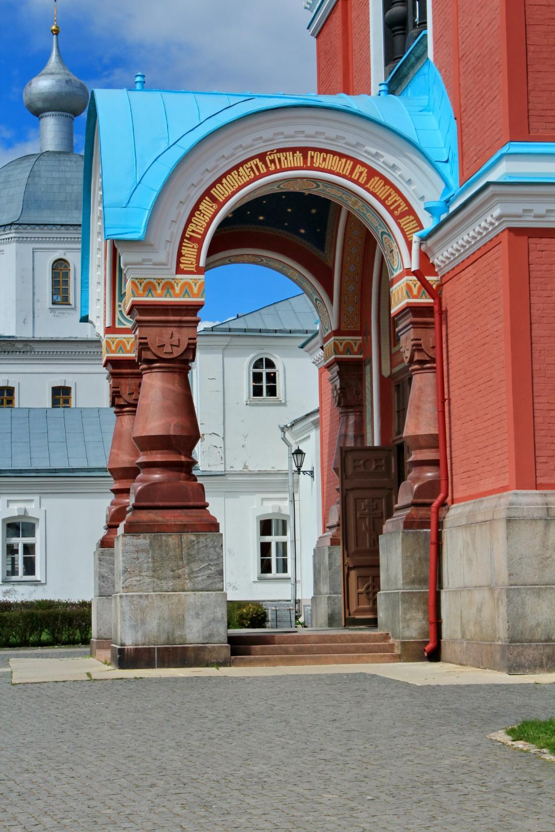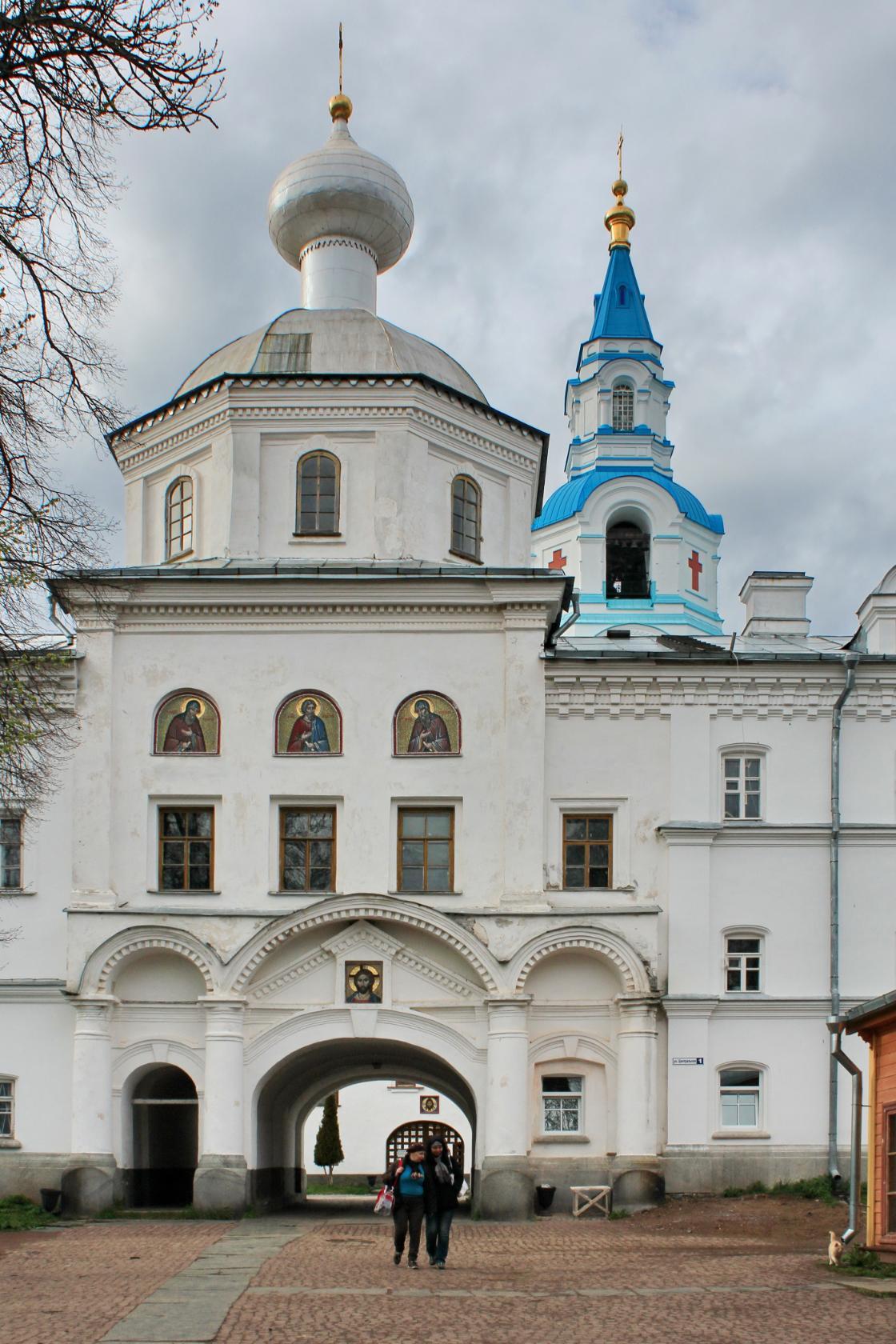 Когда находишься за воротами монастыря, то его небесно-голубые главы, колокольня, белые стены видны далеко вокруг.