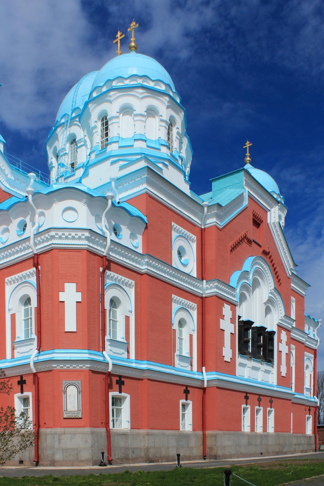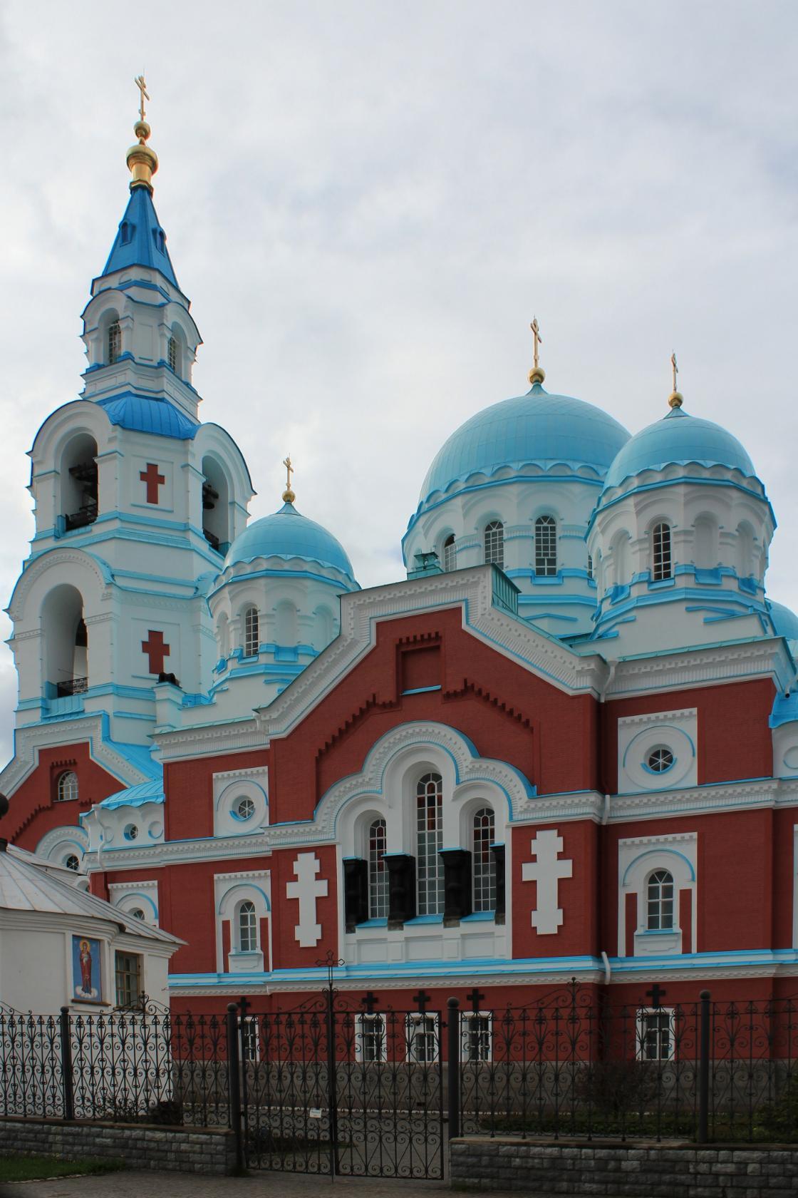 Спасо-Преображенский собор строился с 1887 по 1896 гг. по проекту архитекторов Г.И.Карпова и А.Н.Силина, заканчивал отделку Н.Д.Прокофьев. Двухэтажный собор высотой 43 м с 72-метровой колокольней с западной стороны несет черты как византийского, так и русского стиля. В соборе два храма, верхний во имя Преображения Господня, нижний во имя Преподобных Сергия и Германа.