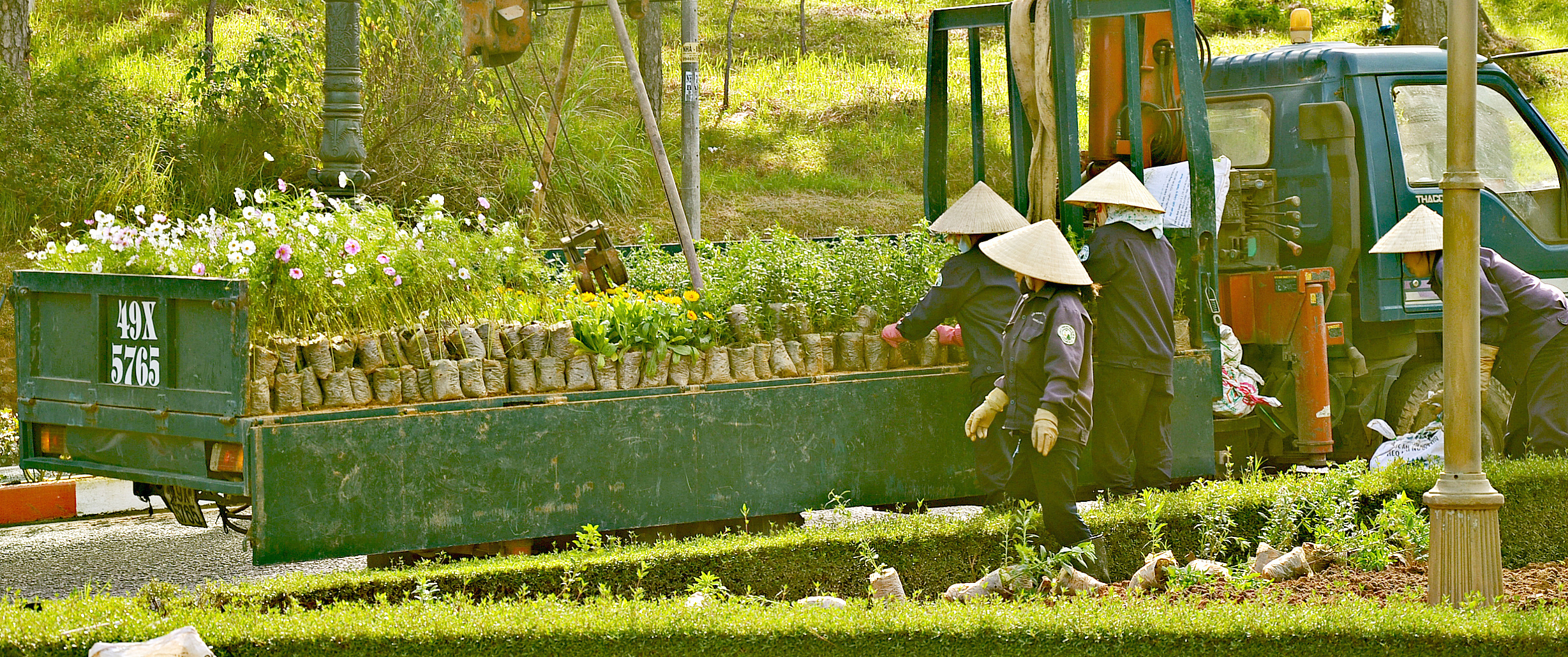 Я шла в цветочные сады Далата. Ещё в день приезда отметила, что повсюду разбиты клумбы, а цветоводы работают с рассадой.
