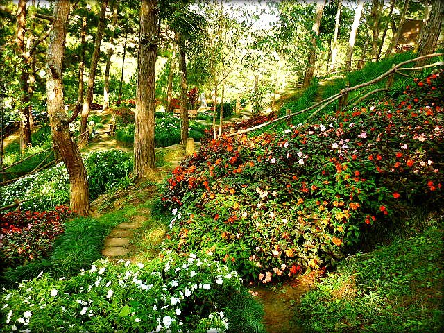 Там выстрижен каждый кустик и ухожено каждое деревце. Здесь бесконечно работают люди, доводя свои сады до совершенства. Яркие клумбы в сосновом лесу вы встретите не только при входе, но и за пять километров от него они будут столь же великолепны.