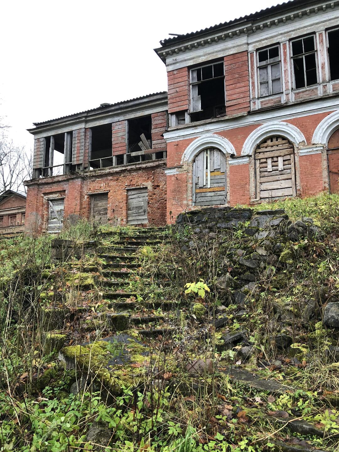 Жаль, что усадебный дом разрушается, каменные лестницы обваливаются, территория зарастает травой и кустарником.