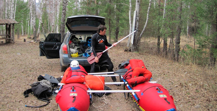 Путешествие предполагало полную автономность, поэтому в машину мы грузили двухместный катамаран, кемпинговое снаряжение, провиант и личные вещи. При погрузке выяснили первый минус «Субару» — не такой он уж и большой (или барахла у нас было много). Задний ряд сидений пошел в расклад (сложили мы их, короче) — для двоих путешественников автомобиль, может, и подойдет, но не больше.