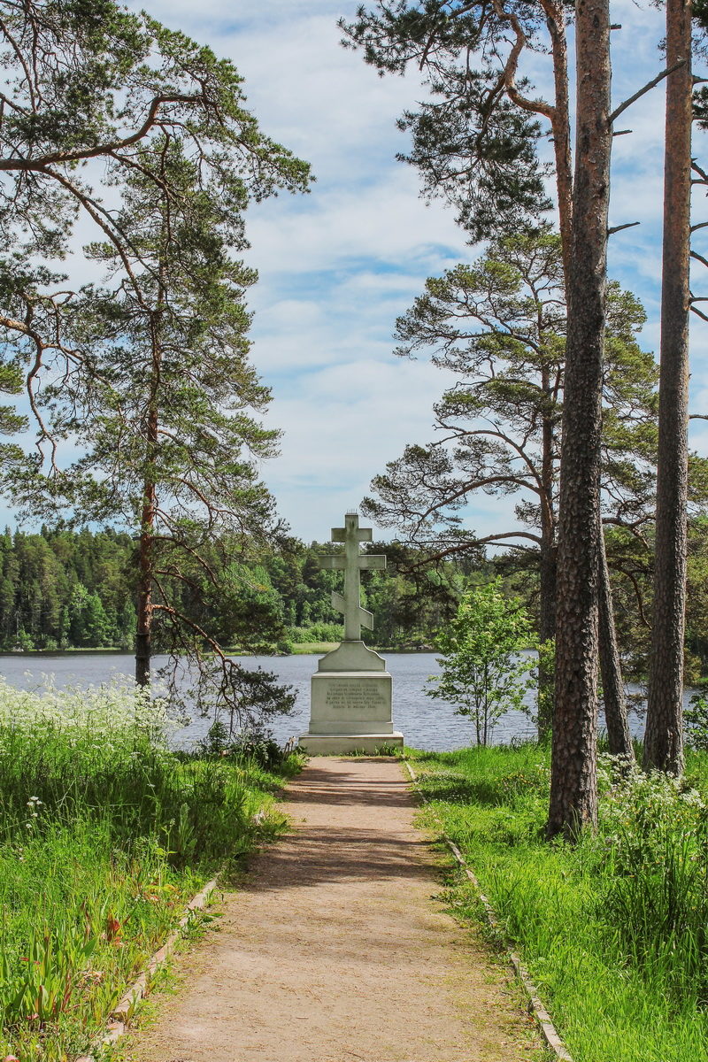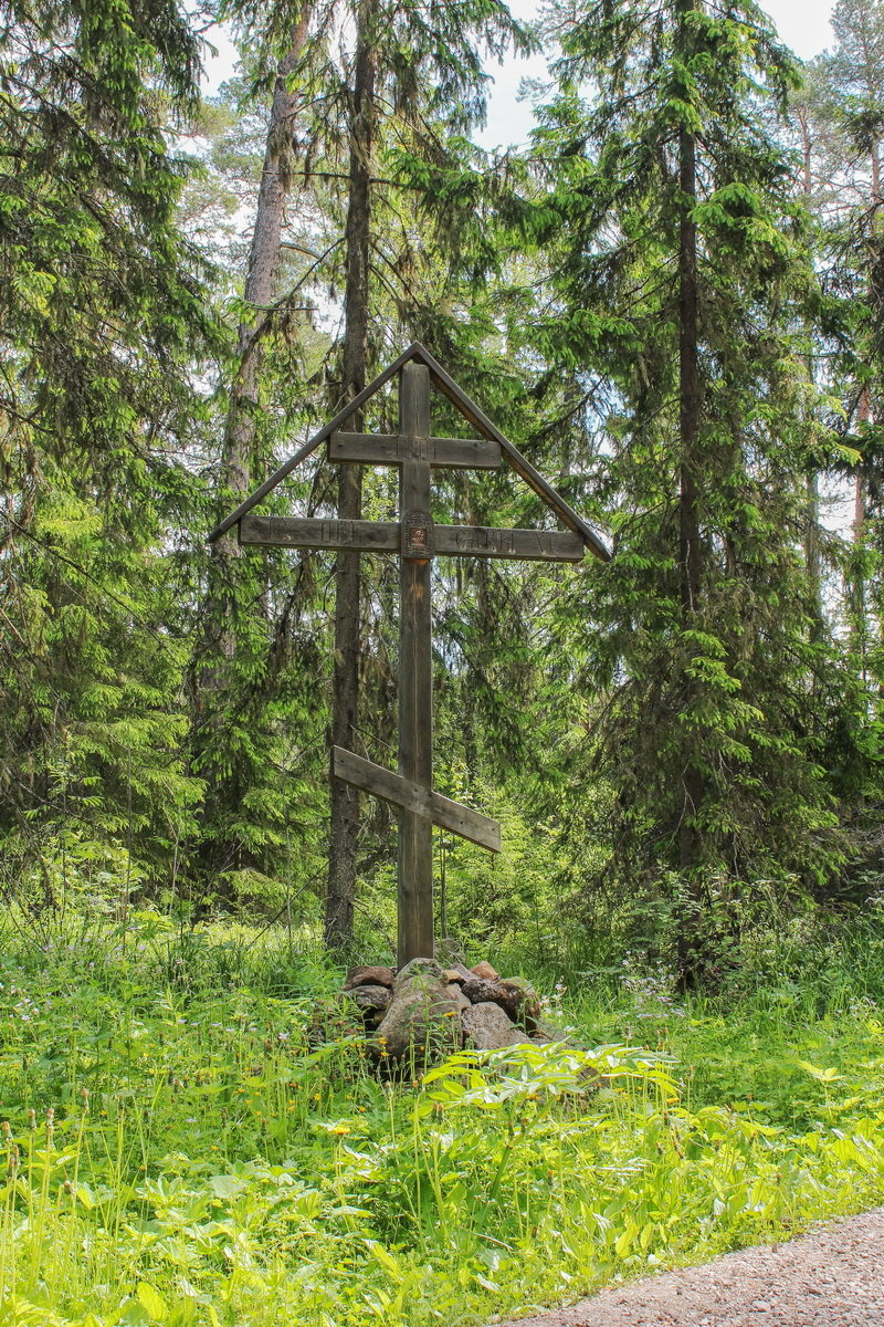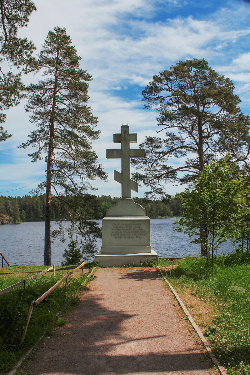 Обойдя храм справа подходим к поклонному кресту, который стоит на берегу Скитского залива.