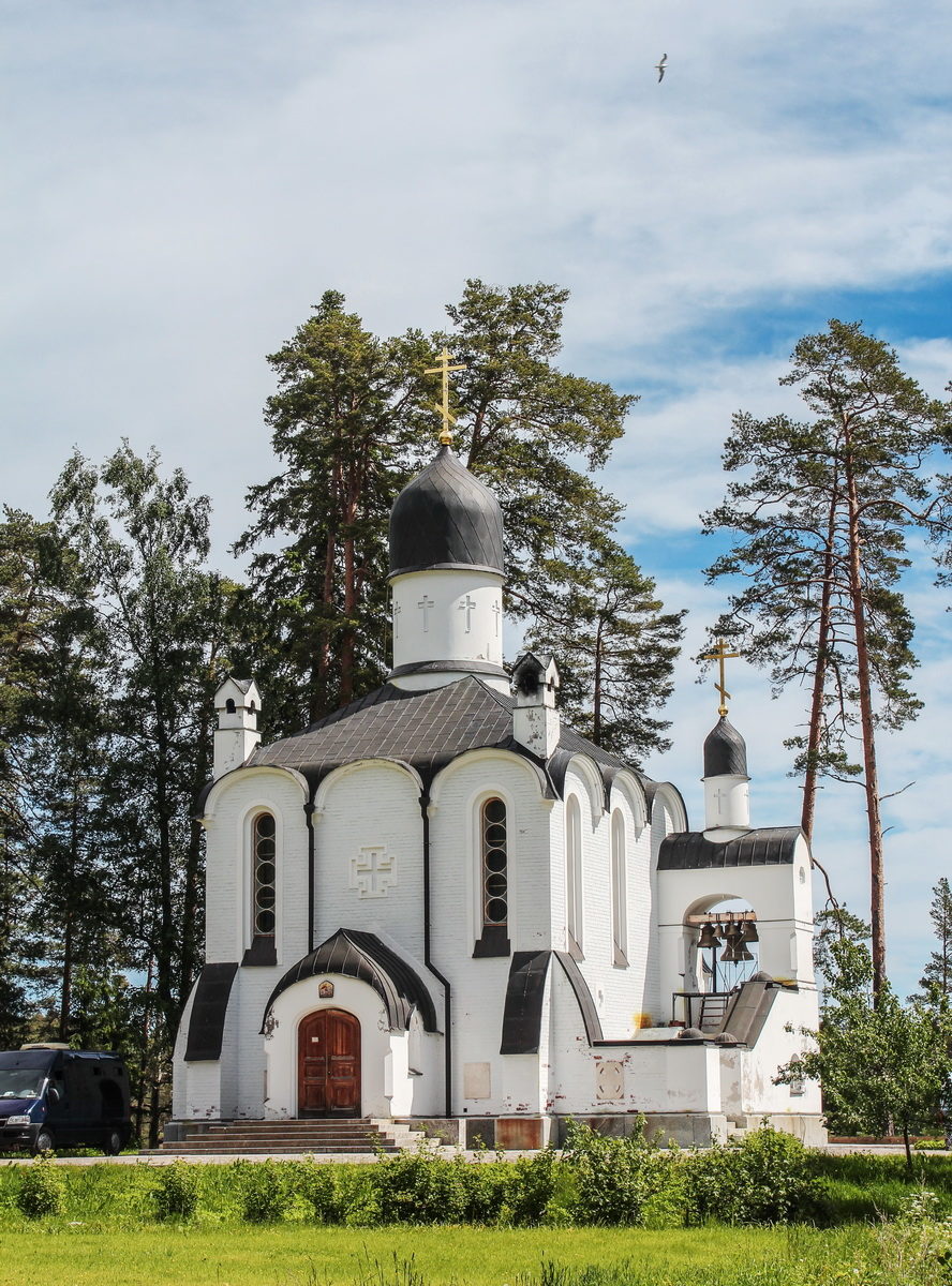 Это кирпичная одноглавая церковь в неорусском стиле. Сооружена в 1915-1917 по инициативе великого князя Николая Николаевича, верховного главнокомандующего (в 1914-1915) российской армией, в память о русских воинах, погибших на фронтах, строилась во имя Валаамской Богоматери, освящена 24.06.1917 как Смоленская. В 1940 закрыта, с годами сильно повреждена. Вновь освящена в 2004.