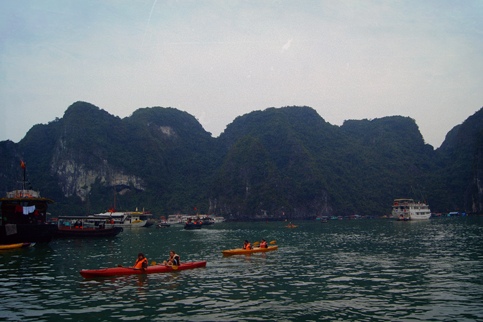 Чтобы фантазировать было легче, пробуют лично освоить основной транспорт жителей бухты. Но признаюсь, моим "крутым виражам" в каноэ посочувствовала бы даже барка репинских бурлаков. Мой товарищ по веслу была из Индонезии и до боли напоминала мою первую кошку Кису. Дело в том, что отсутствие имени - не единственная неудача животного - вес Кисы вряд ли превышал килограмм, и большую его часть составляла странная душа, проглядывающая сквозь грусть пронзительного взгляда. Вот такой была и моя индонезийка - загадочная, безымянная и бесполезная. Потому, пока все наматывали круги вокруг островов, я будто и не выходила за пределы пятничного киевского кафе: оказывается, истории о жизни взрослой дочери под одной крышей с родителями одинаково печальны и в декорациях украинских хрущевок, и под пальмовыми крышами Индонезии. Казалось, халонгские дома на воде плавали вокруг нас, а не мы выруливали из их "районов". Пока за одним из возвышающихся островов лучи, наконец, окончательно не прорезали кисельный вьетнамский туман, и мы, кряхтя и заливая каноэ водой, не прорвались навстречу закату.