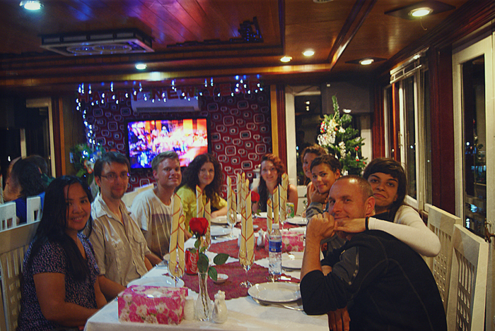 Если есть возможность не платить за single, я не плачУ - должно же хоть одиночество в этом мире доставаться бесплатно? Да и опыт не раз показывал, что небо посылает мне таких попутчиц, словно я даю ему взятки. Туристка из Израиля, видимо, генетически помнит, какие проценты небо берет за свои авансы, потому заранее честно оплатила неприкосновенность своей каюты. Что не помешало Hero подселить к ней немку под предлогом "кают не хватает". Израиль, перетягивающий на себя ночью одеяло с Германии - однозначно лучшая аллегория Вьетнама. Но моя рожденная в СССР совесть взывала к справедливости и честно объявила, что "дастишфантастиш" этой ночью прописан мне. Hero взял мои ключи, долго щурил на них глаза, будто Гитлер прописал там, почему евреям не положена отдельная каюта, и уверенно огласил - "NO!". А через пару часов отвел меня в сторону со словами: "Нуууууу..... вот ты же не заказывала single, а тем не менее у тебя лучшая каюта и всетакое. Платить за нее не надо, конечно, ноуноуноу". Это, друзья мои, тот неловкий момент, когда "WTF?!" - это и вопрос, и ответ одновременно. От таких честных, как беспроцентный кредит, фраз хочется бежать по воде прямо замуж готовить борщи и ездить августом в Алупку. Только вот прибежать в бухте Халонг можно лишь лодочницей в плавающие деревни. Спасибо блондинкам - если бы не их международный язык хлопающих ресниц, я бы еще пару лет назад в горном отеле Шри-Ланки сложила голову под напором восточных тонкостей. А так - складываешь глаза в намастэ, слова в неразборчивое "я не понимать даже свой язык", и поперечно ключ в замке. Этот "триединый бог" успешно спас меня от "вьетнамского наступления", или же я их беспечно проспала, пока наша международная палуба нарушала тишину великой реки неизменной азиатской анимацией - караоке;)