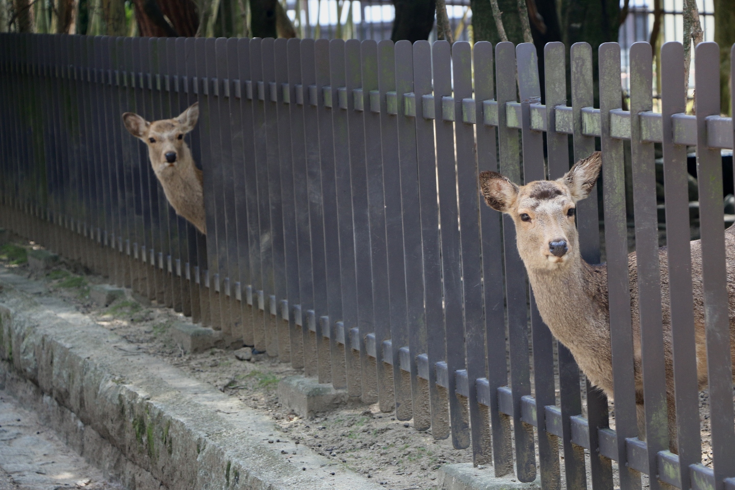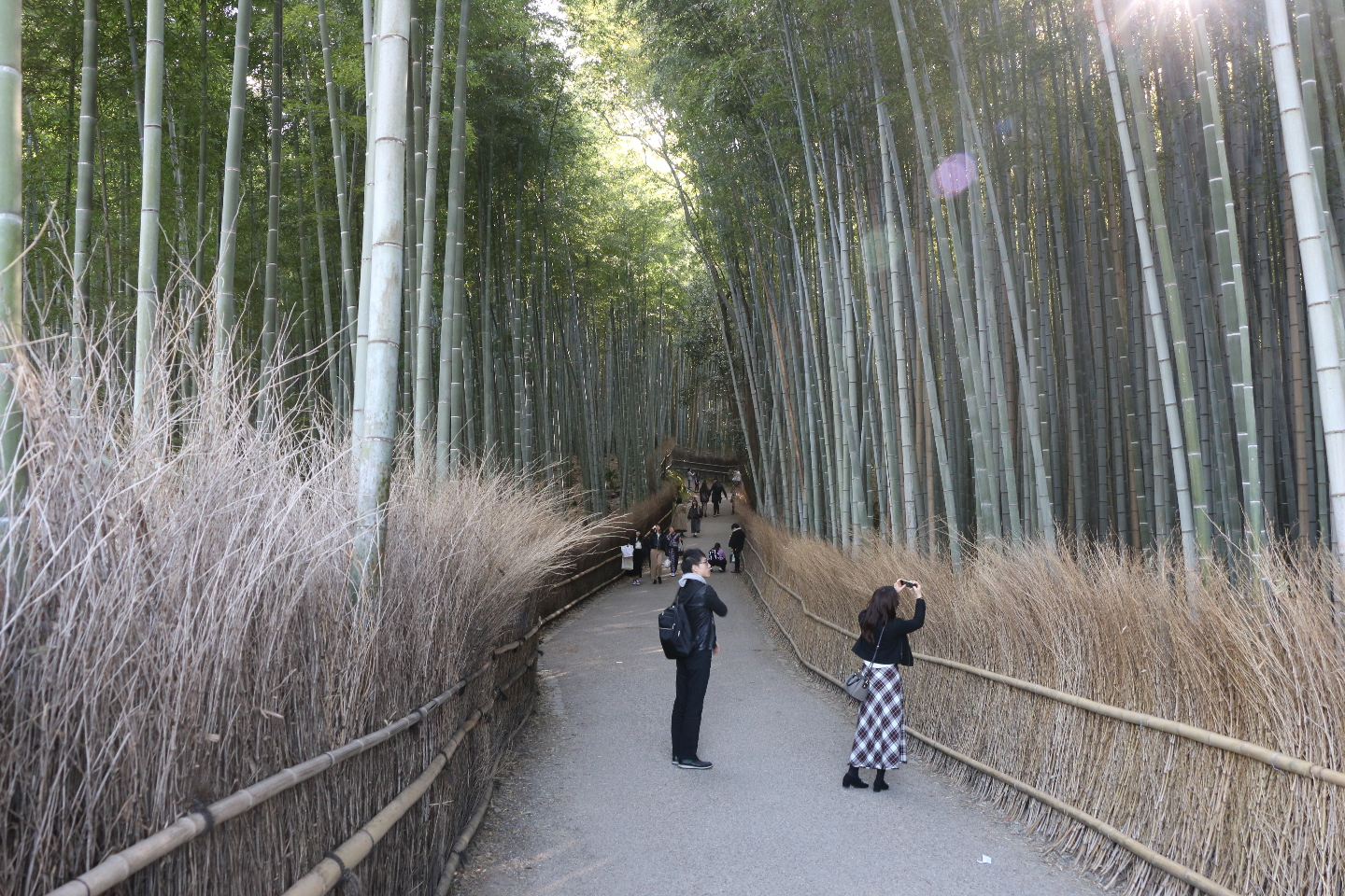 Очень приятно удалось погулять по полупустым аллеям бамбукового леса в Киото. Показалось, что отсутствию людей удивляются даже четвероногие обитатели этой территории.