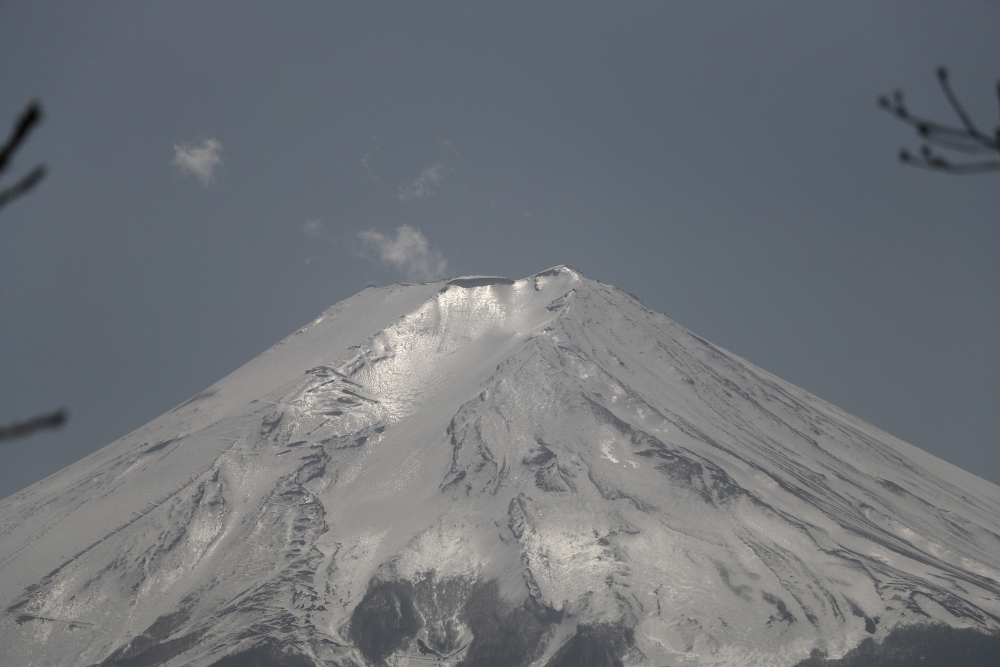 Наверное, любой фоторепортаж о Японии будет незаконченным, если не показать символ страны - гору Фудзияма. В отличие от хрестоматийных пейзажей горы с пагодой, озером или поездами на первом плане, на снимке изображена покуривающая вершина с блестящими от солнца снежными склонами.