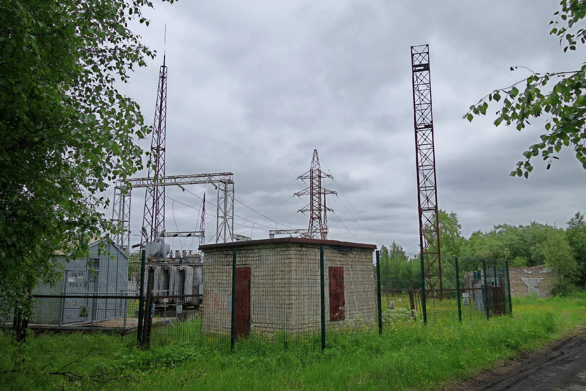 Из всех строений только электрическая подстанция не порушена и находится в рабочем состоянии. Но не охраняется..., хотя забор новый.
