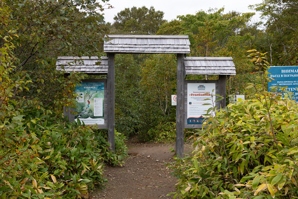 Вход на экотропу “Столбовская”. Заповедник “Курильский”